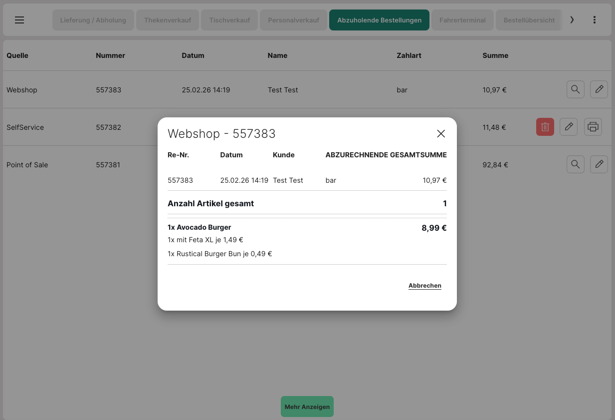 - Abholbestellungen ansehen:
