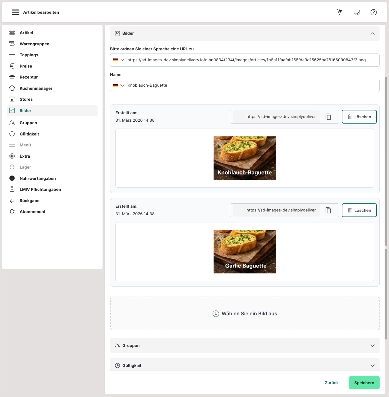 In dem Reiter "Bilder" kann ein entsprechendes Bild für den Artikel hochgeladen werden.
