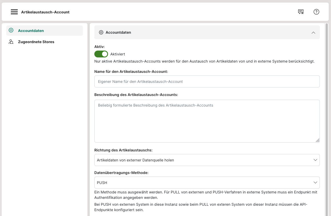 Der Artikelaustausch erfolgt über spezielle Accounts, die für den Austausch von Produktinformationen zwischen internen und externen Systemen konfiguriert sind.