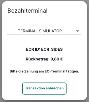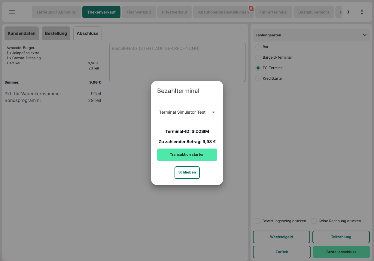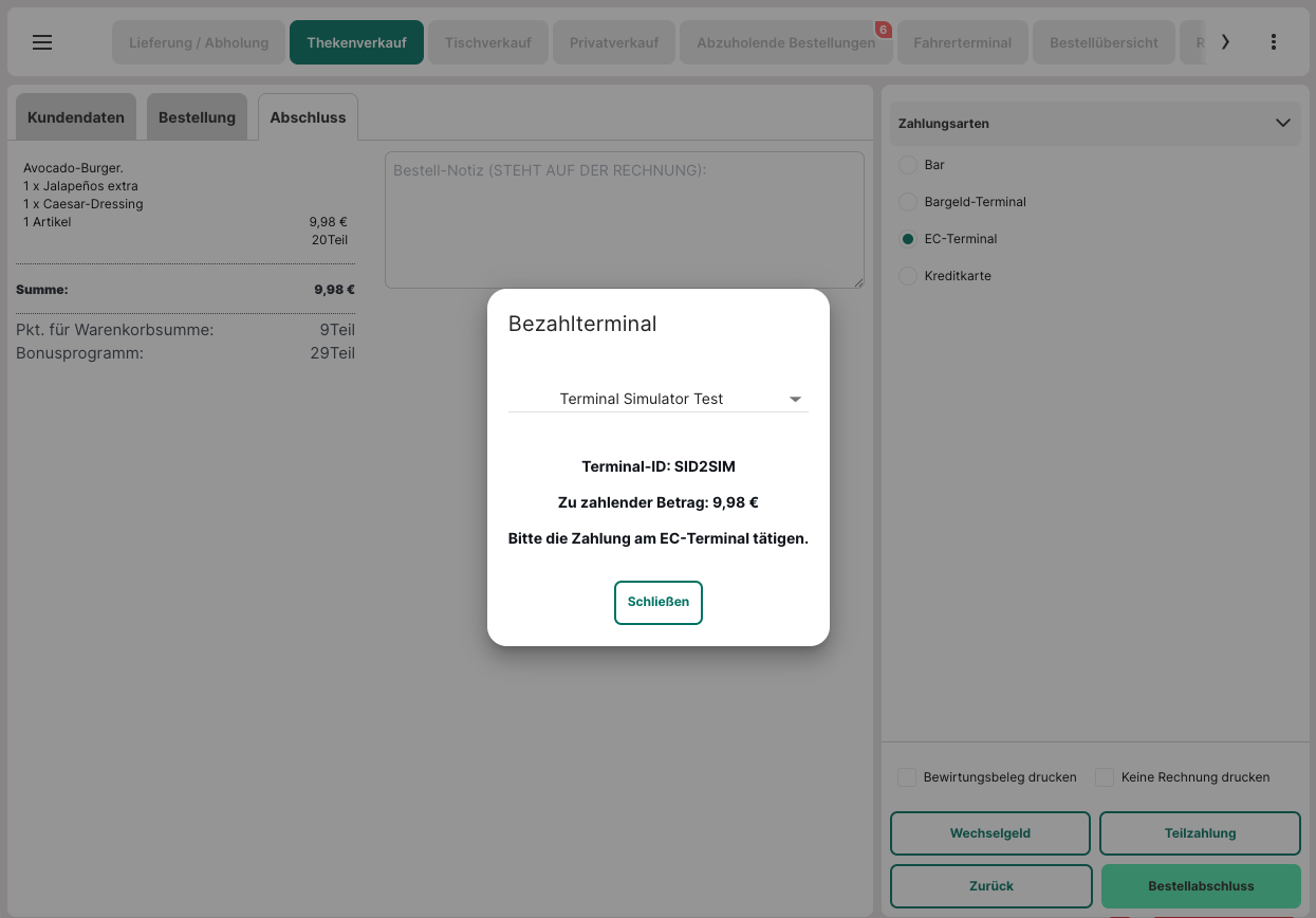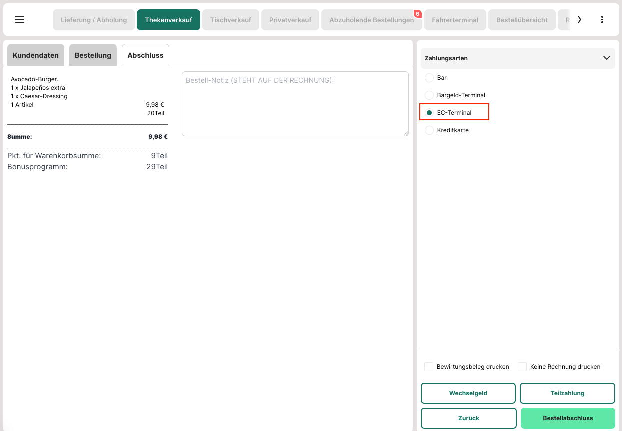 "EC-Terminal" (o.Ä.) als Zahlart wählen.