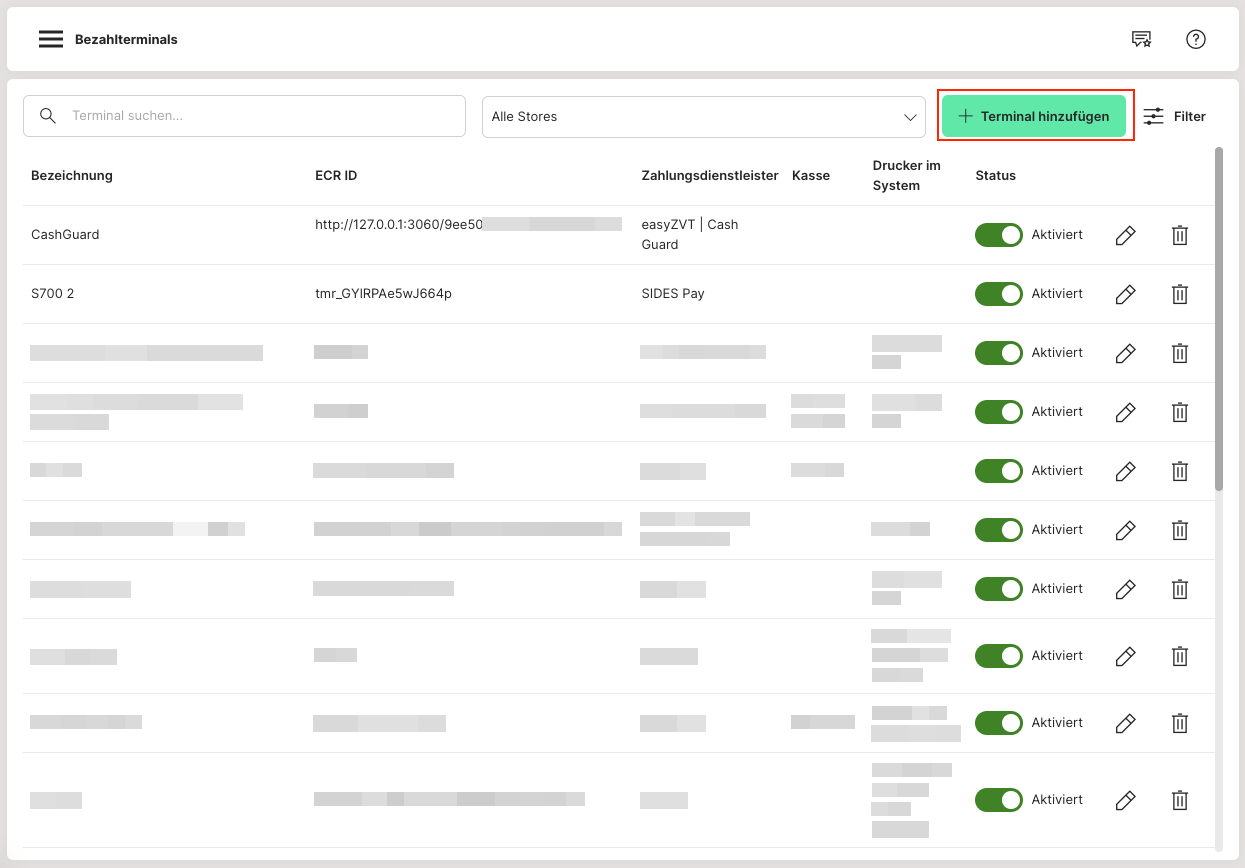 Zunächst auf den dunkelgrünen Button "(+) TERMINAL HINZUFÜGEN" oben links klicken.