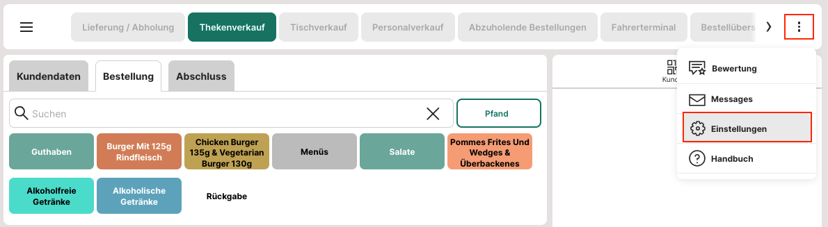 Aufrufen des Selbstbedienungsterminals Mit dem Selbstbedienungsterminal können deine Kunden direkt an einem Terminal ihre Bestellung aufgeben. Dieses sollte in einem gut sichtbarem Bereich im Eingangsbereich aufgestellt sein. Damit du das Terminal ...