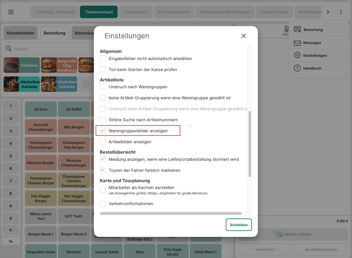 - Aktiviere die Option "Warengruppenbilder anzeigen".