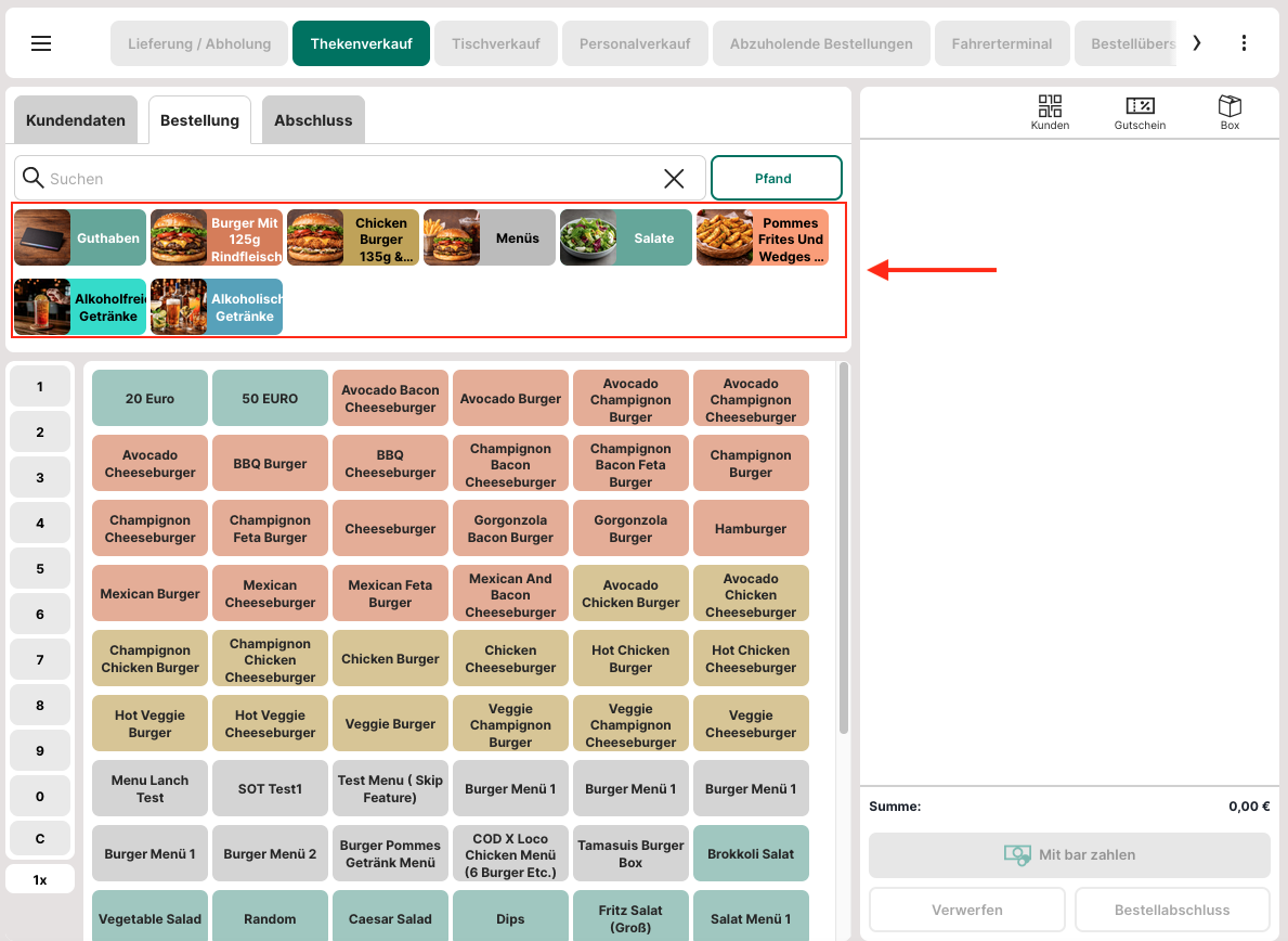 Das erleichtert die visuelle Orientierung und unterstützt eine schnellere Navigation während der Bestellaufnahme.