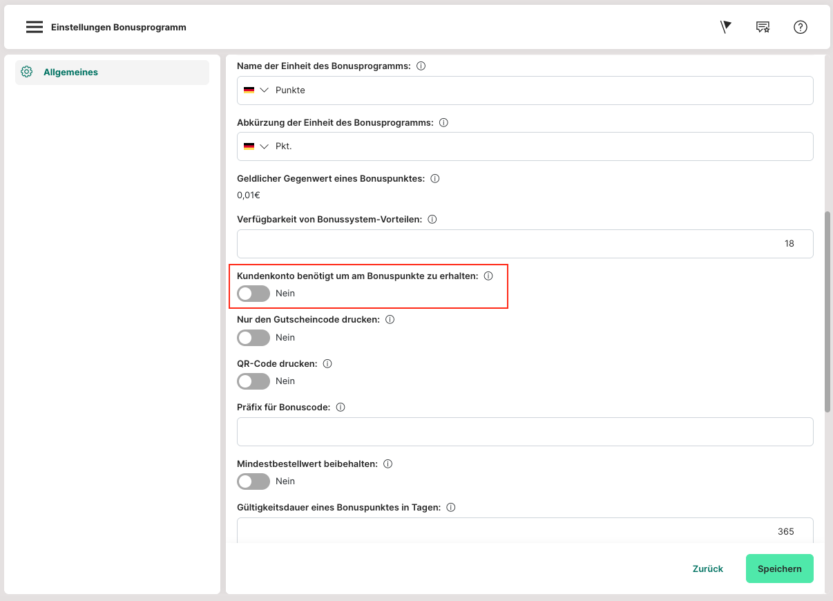 - Deaktiviere die Einstellung "Kundenkonto benötigt, um Bonuspunkte zu erhalten".