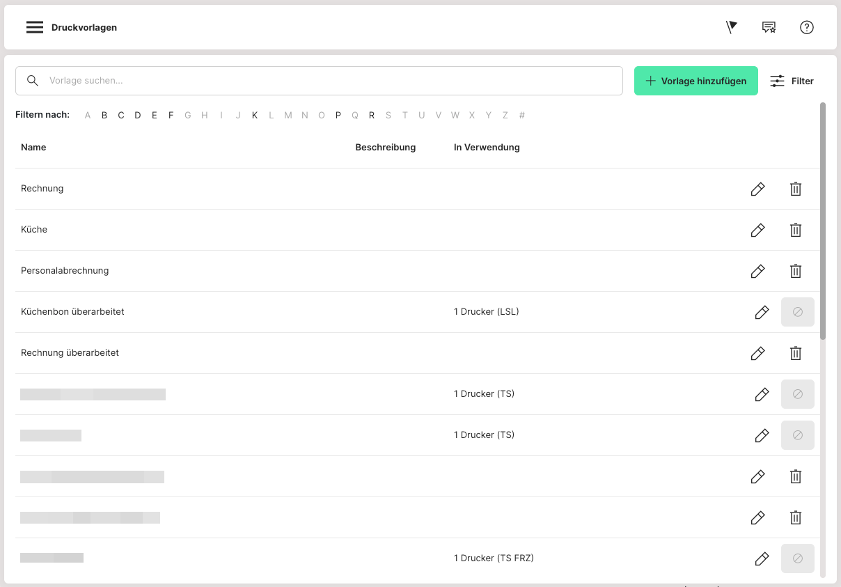 Druckvorlagen verwalten in der Restaurant POS-App