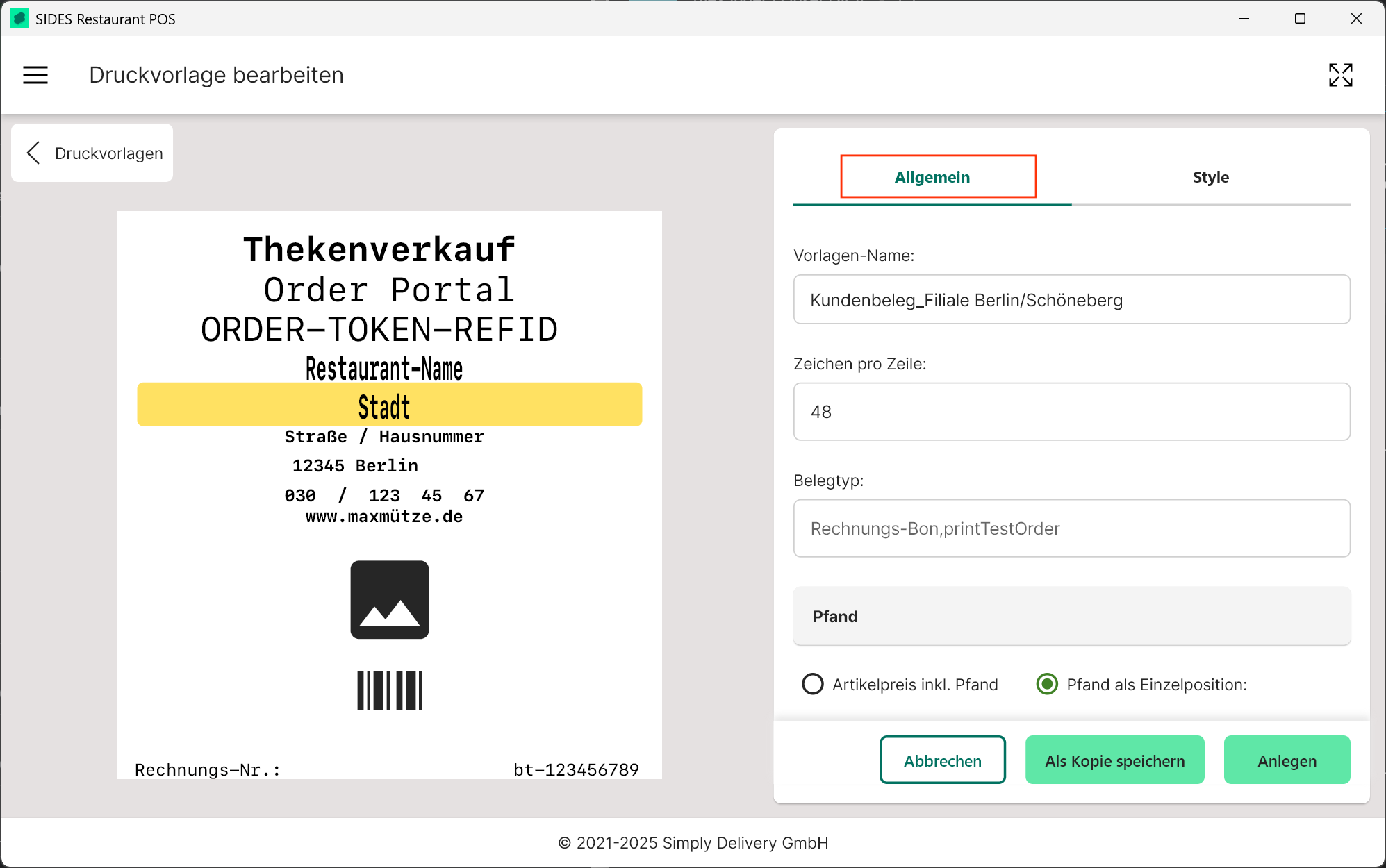 2. Tab "Style" – Gestaltung des Beleglayouts