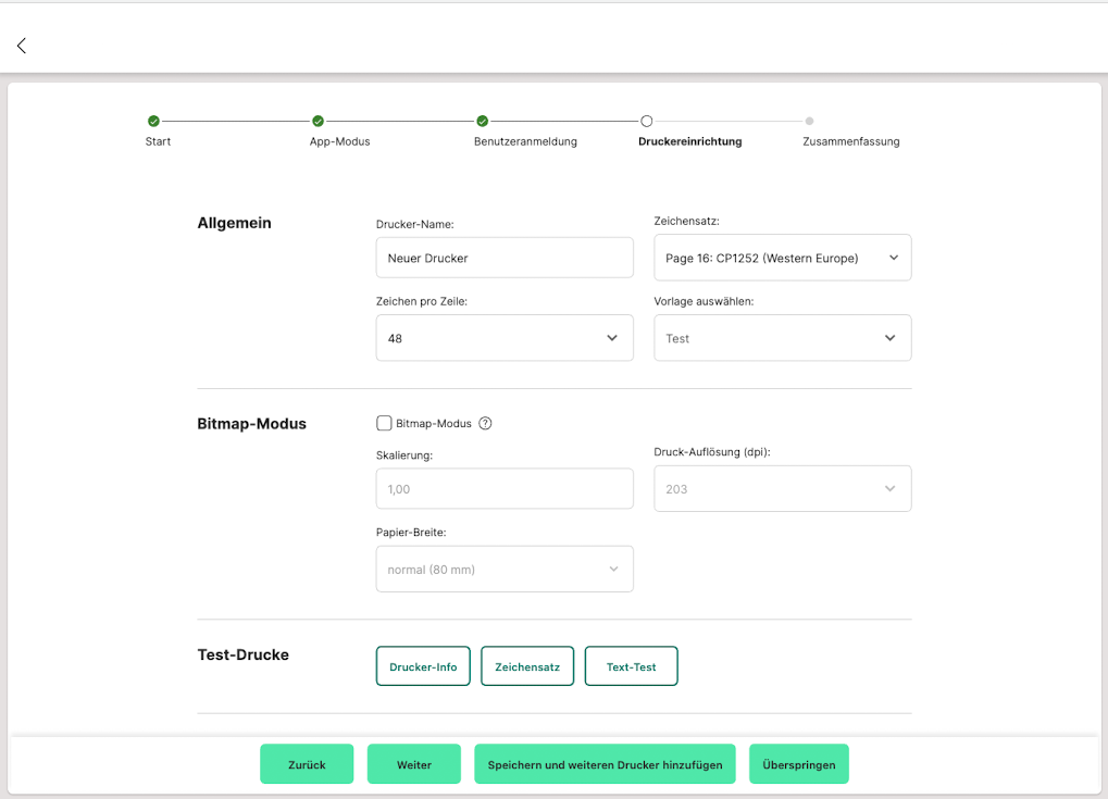 - Klicke auf "Weiter", um zur Zusammenfassung zu gelangen, oder auf "Speichern und weiteren Drucker hinzufügen", um einen weiteren Drucker hinzuzufügen.