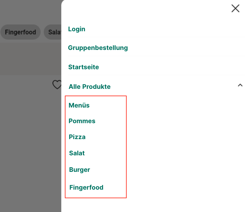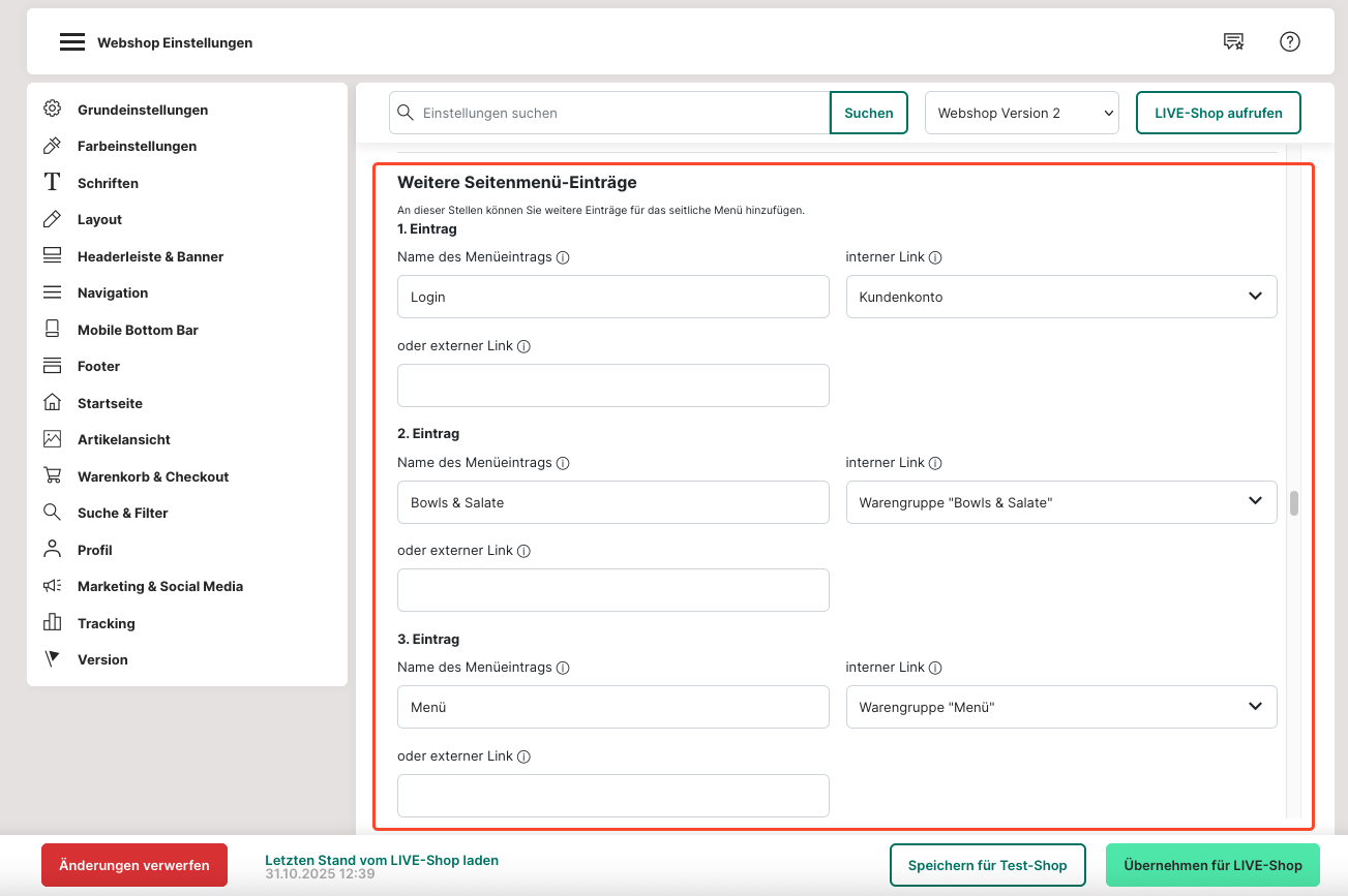 Das "Seitenmenü" gilt nur für den mobilen Webshop, d. h. für die Version deines Webshops, die speziell für mobile Geräte wie Smartphones und Tablets optimiert ist.