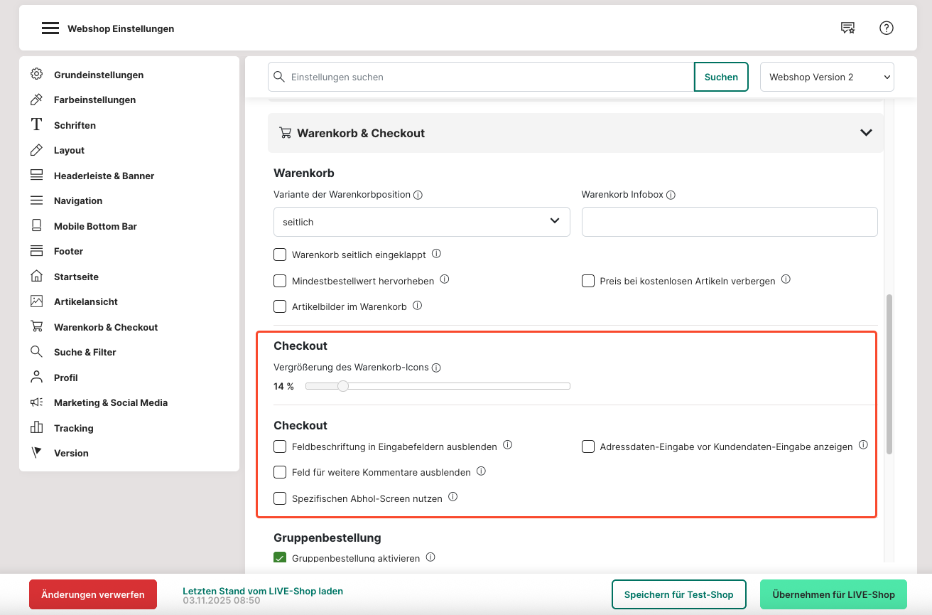 Warenkorb & Checkout