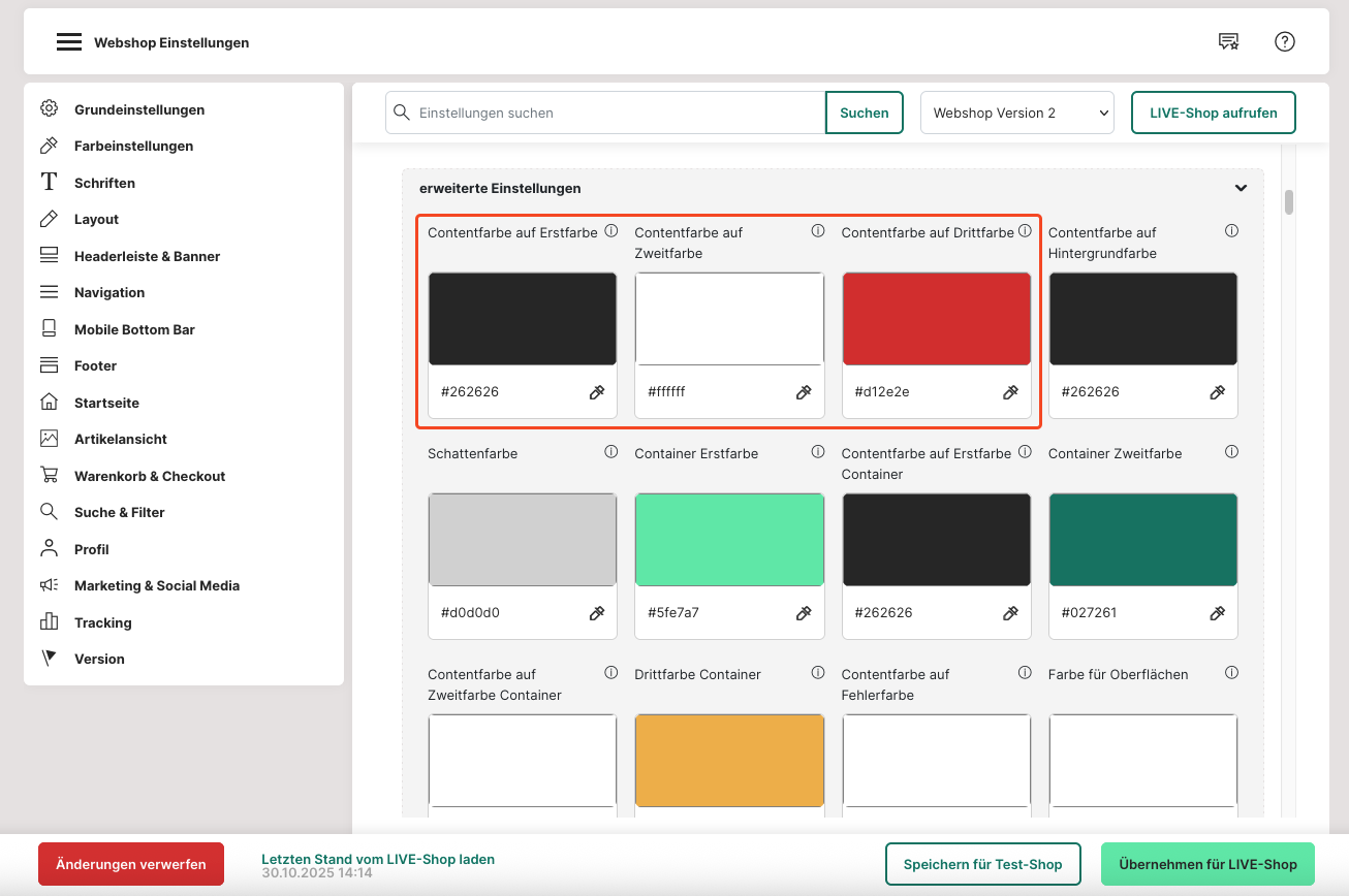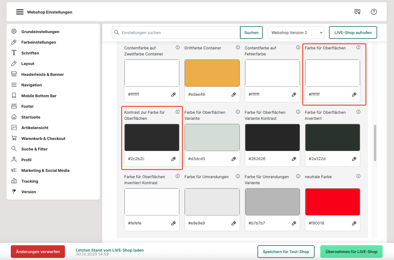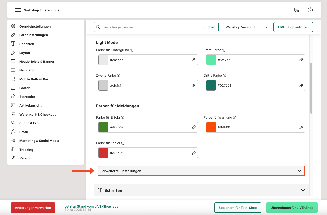 9. Unter "Farbe für Links" kannst du eine Farbe deiner Wahl für Verlinkungen in deinem Webshop einstellen.
