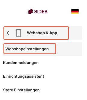 2. Gehe unter "Webshop & App" auf "Webshopeinstellungen".
