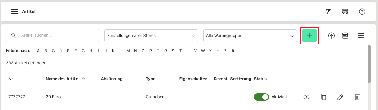 Um bspw. unsere Pizza zu erhalten, müssen wir zuerst die Rohstoffe als Artikel anlegen, die zu ihrer Herstellung benötigt werden. Dazu gehe im Menüpunkt Artikel auf den Unterpunkt Artikel. Hier wählst du oben links den Button „Artikel hinzufügen“.