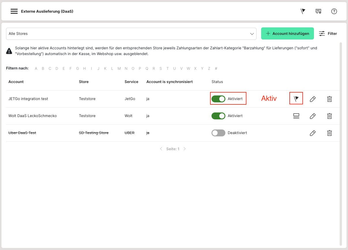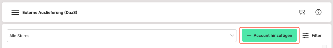 Admin: Externe Dienste > Externe Auslieferung (DaaS) > Account hinzufügen.