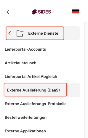 (Früher unter: Store > Externe Auslieferung (DaaS)). |