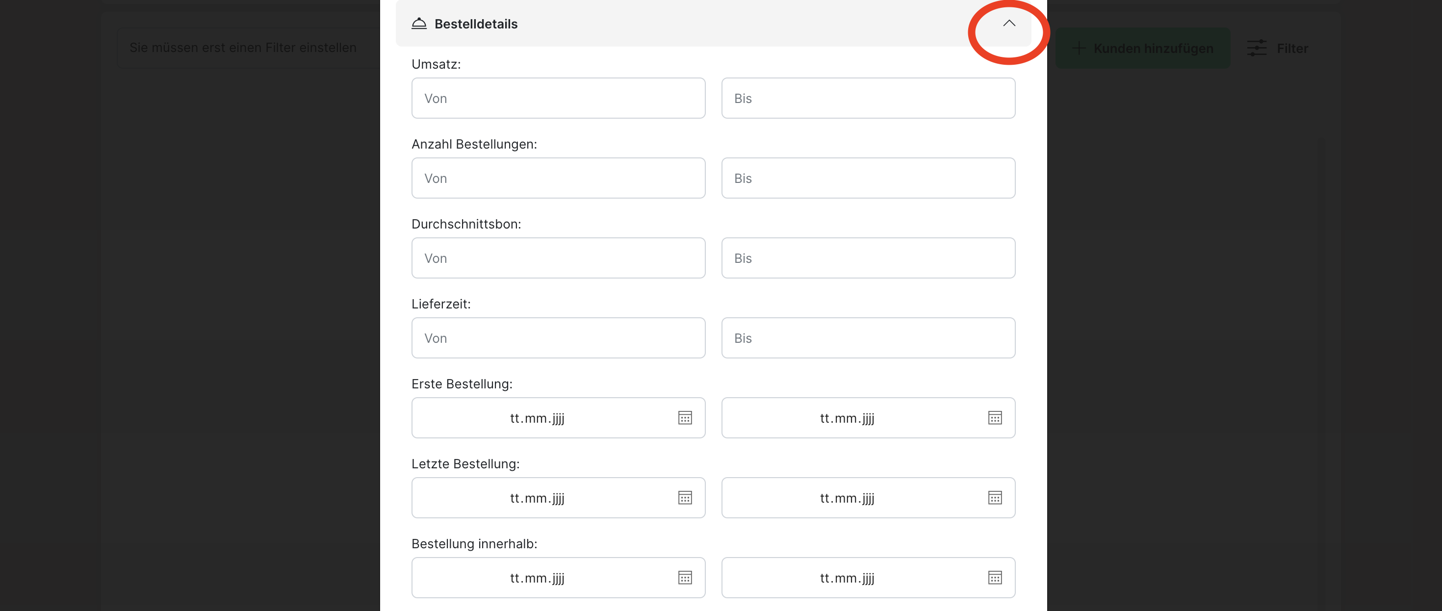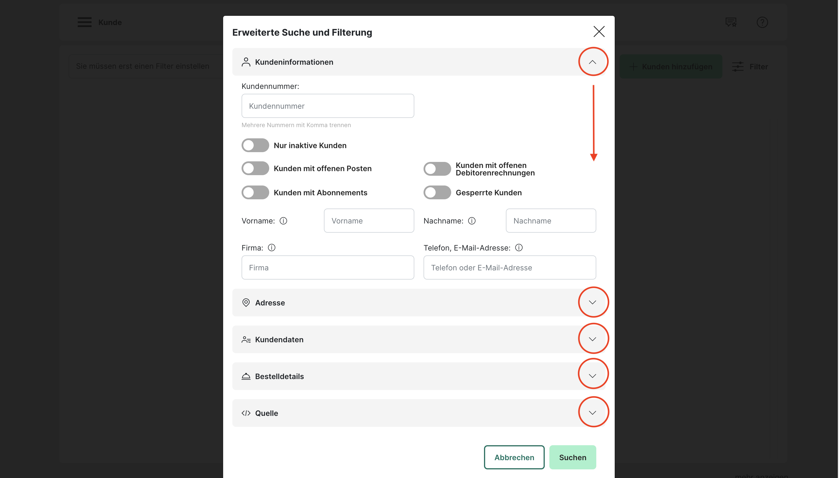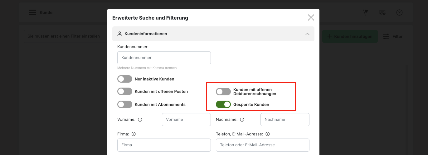 Filterung nach Kundendaten:
