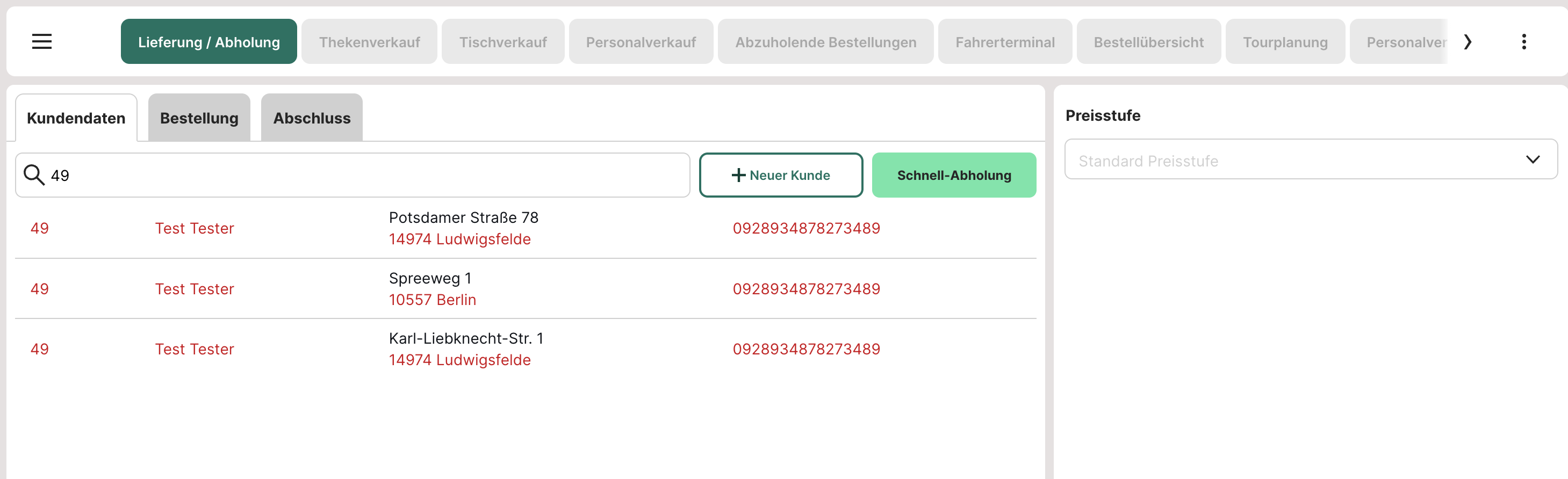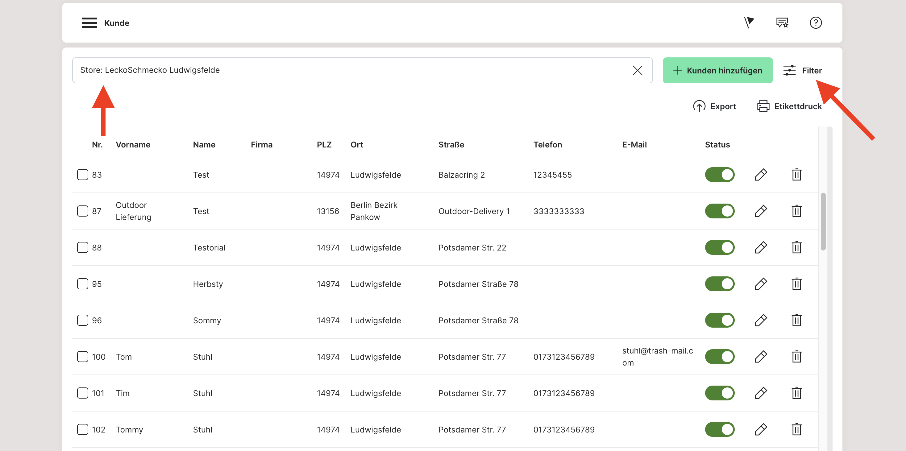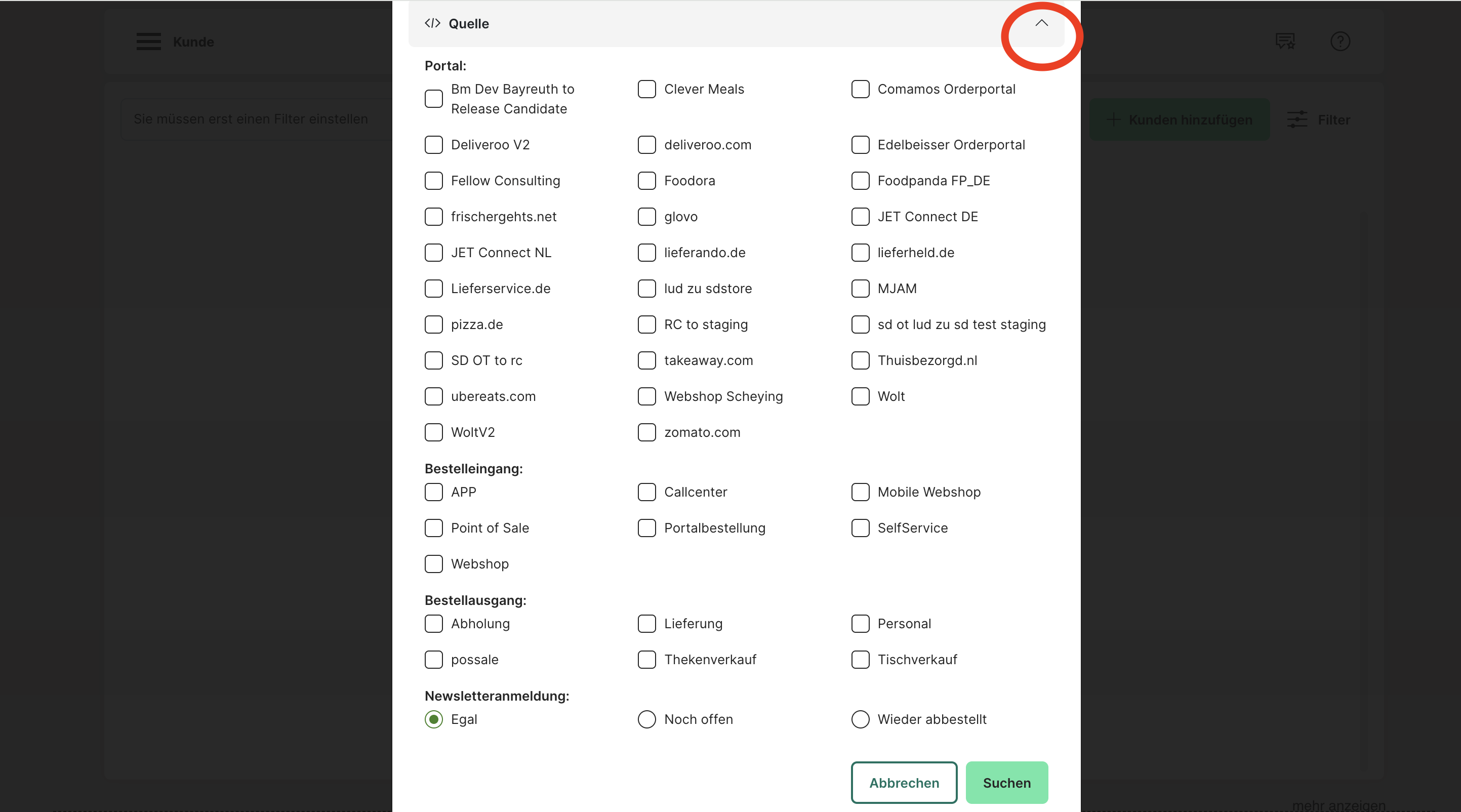 Filterung nach Kundendaten: