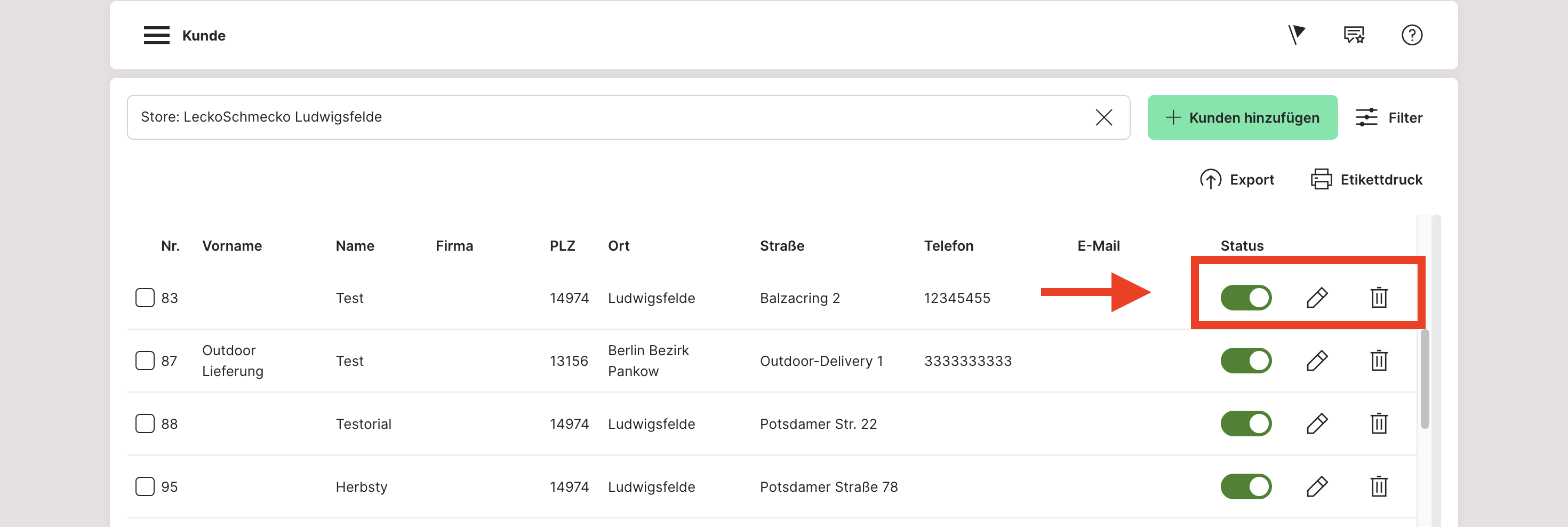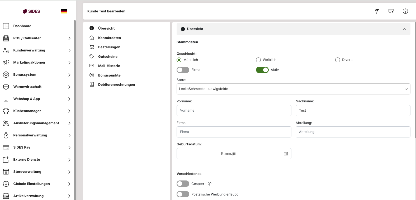 Innerhalb der Daten eines Kunden findest du ebenfalls die entsprechende Funktion für das Sperren eines Kunden. Ist diese Funktion aktiviert, werden alle Bestellungen des Kunden abgelehnt: