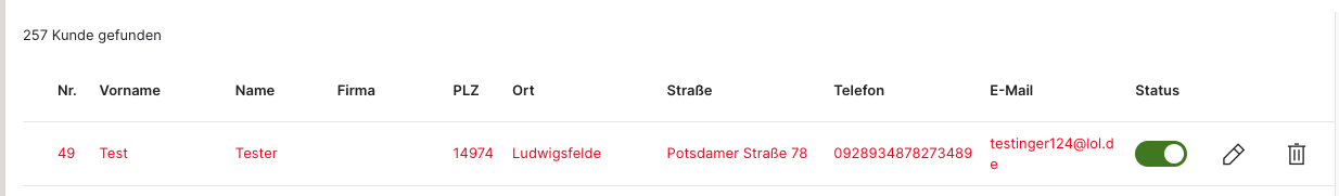 Solltest du die Kundendatei eines spezifischen Kunden bearbeiten wollen, dann kannst du dies durch einen Klick auf das Stiftsymbol tun. Dadurch öffnet sich die Kundenmappe.