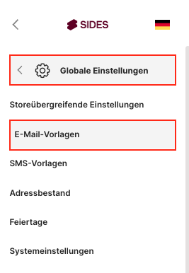 - Navigiere zu Admin: Store > E-Mail-Vorlagen.