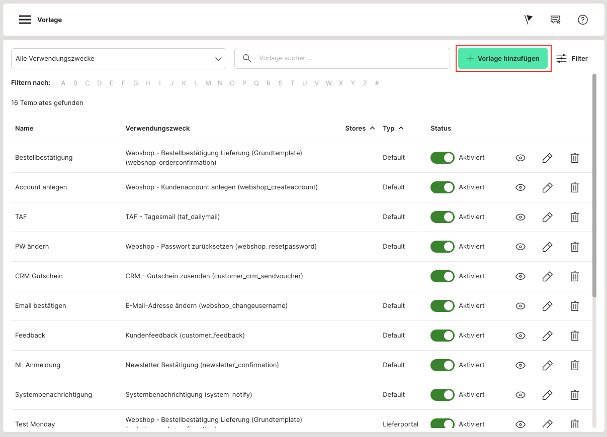 Admin: Store > E-Mail-Vorlagen > Vorlage hinzufügen.