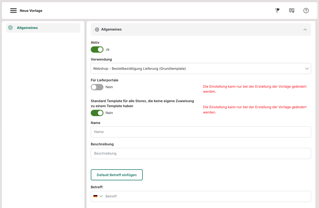 Aktiv: Setze diese Option auf "Ja", um die Vorlage zu aktivieren.