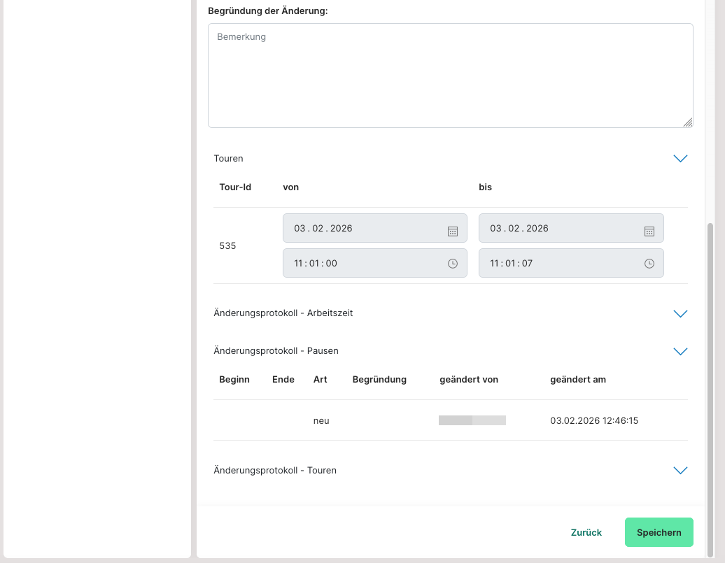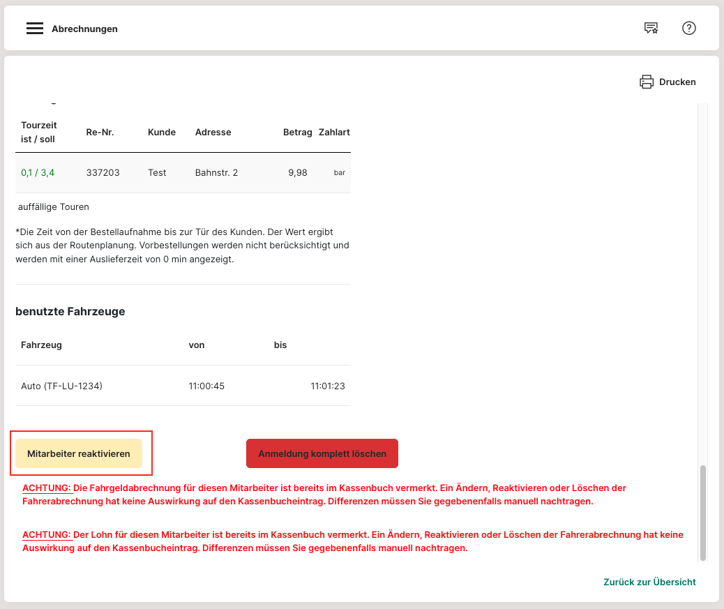 Sollte einmal ein Mitarbeiter eine Tour nicht ordentlich abgeschlossen oder sich fälschlicherweise abgemeldet haben, dann kann er wieder reaktiviert werden.