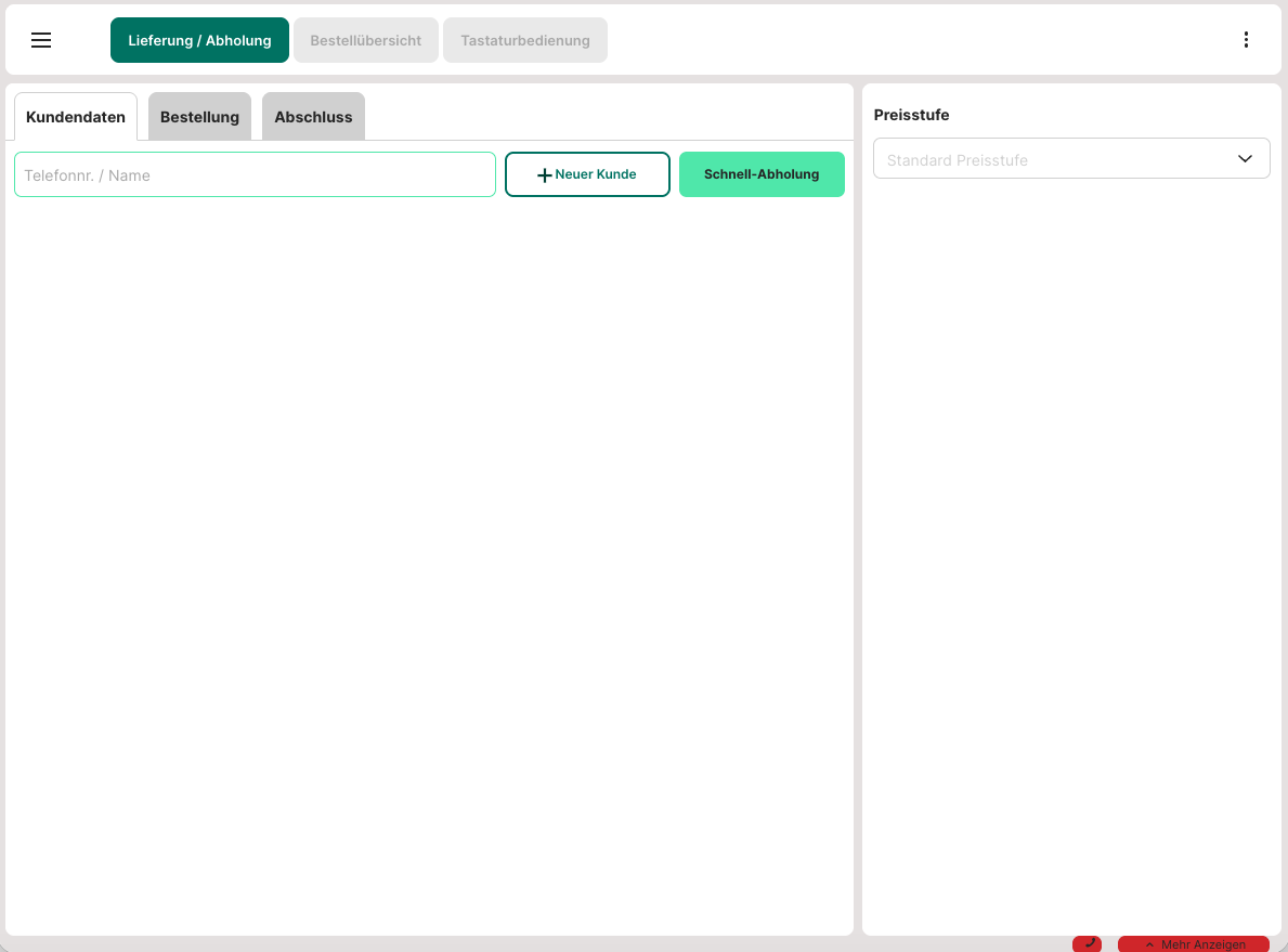 Wählt man den Menüunterpunkt „Neue Bestellung“ in der Admin, kann man auch hier zur Ansicht "Lieferung / Abholung" gelangen, um eine Bestellung aufzunehmen. Besonders interessant ist dies für Franchiser, die ein Callcenter nutzen. Das Callcenter kann hier nach Aufnahme einer Bestellung den Store auswählen, in dem die Bestellung landen soll.