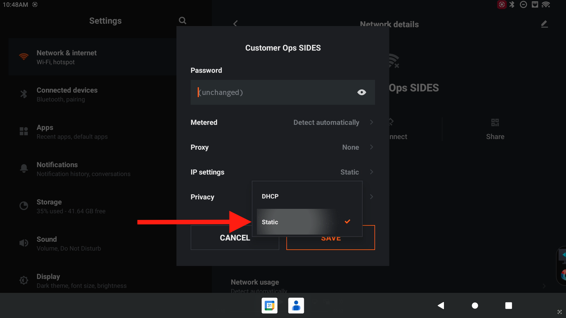 8. Stelle die IP-Einstellungen von DHCP auf Statisch.