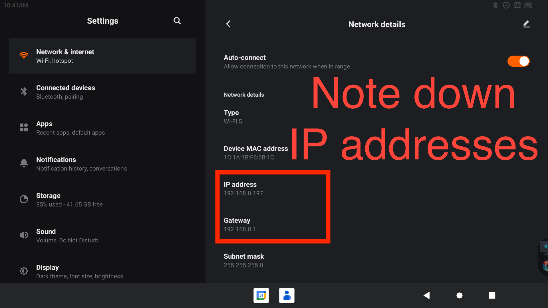 5. Prüfe die Netzwerk-Einstellungen und die derzeitige Konfiguration und notiere dir diese für später.