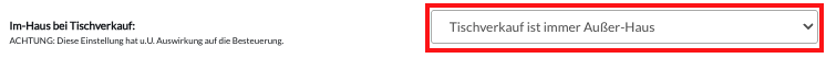 „Im-Haus bei Tischverkauf“ auf Tischverkauf ist immer Außer-Haus setzen