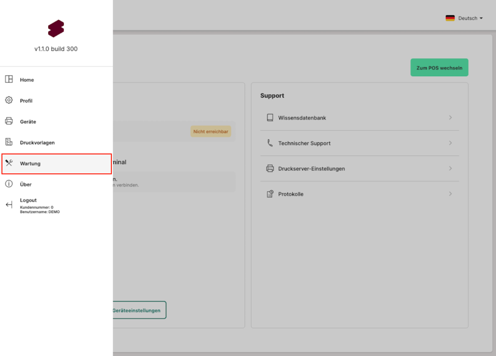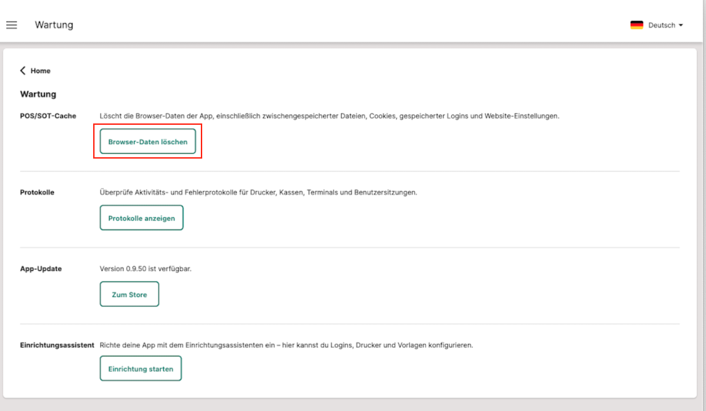 Im Bereich "Wartung" findest du alle wichtigen Werkzeuge, um deine Restaurant POS App zu warten, Fehler zu analysieren und Updates oder eine neue Einrichtung auszuführen. Dieser Artikel erklärt dir die einzelnen Funktionen und zeigt, wann du sie einsetzen solltest.