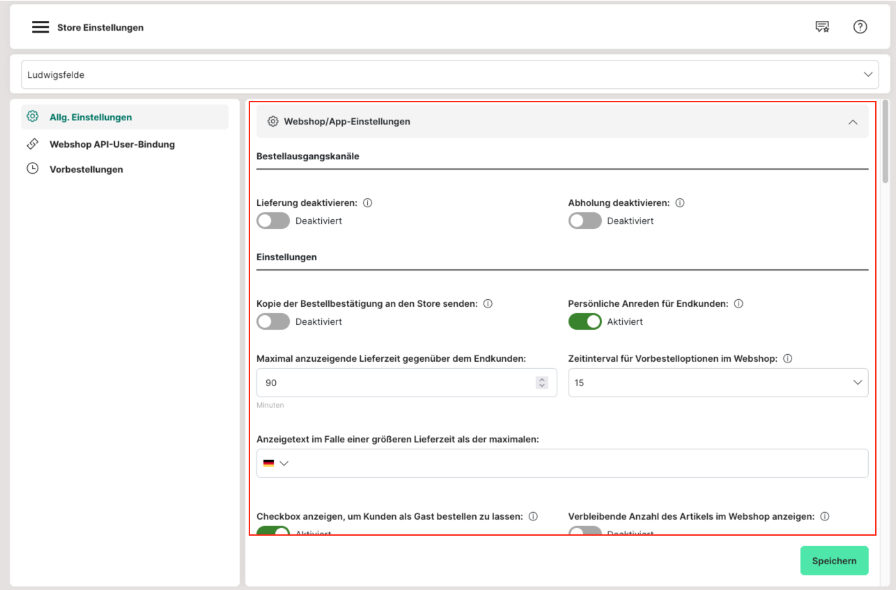 Über die "Allgemeinen Einstellungen" für Webshop- und App-Store-Einstellungen konfigurierst du Bestellarten, Bestellabläufe sowie die für Kunden sichtbaren Texte.