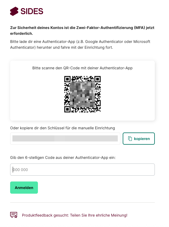 Je nach Konfiguration wirst du automatisch nach dem Login oder bei Aktivierung im Profil auf die 2FA-Einrichtungsseite geleitet.