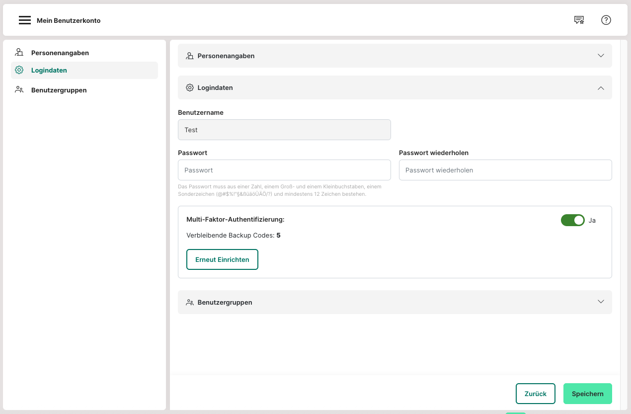 - Freiwillig: Du kannst 2FA in deinen Profileinstellungen selbst aktivieren oder deaktivieren (sofern sie nicht verpflichtend gesetzt ist) und auch neu einrichten, z. B. um neue Backup-Codes zu erzeugen.