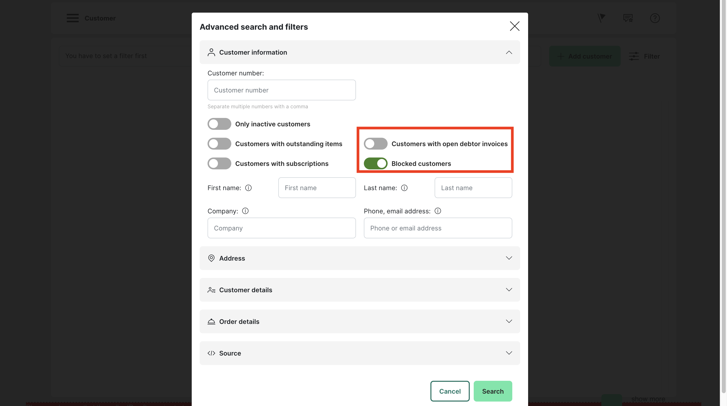 Filter by Customer data: