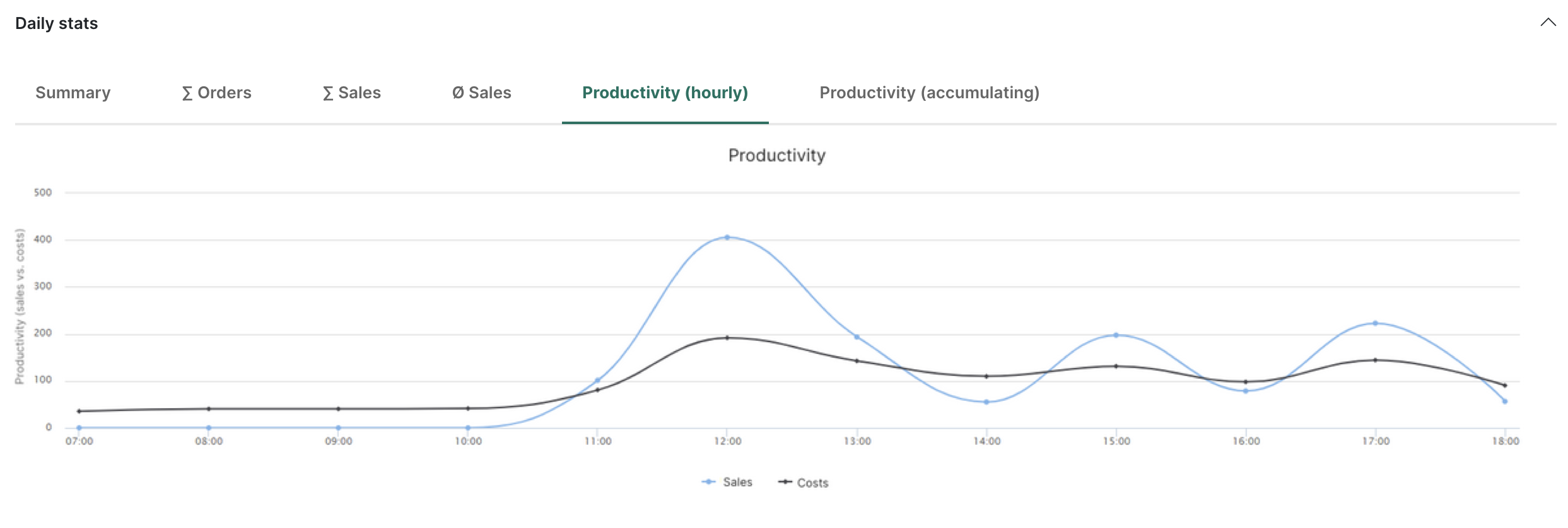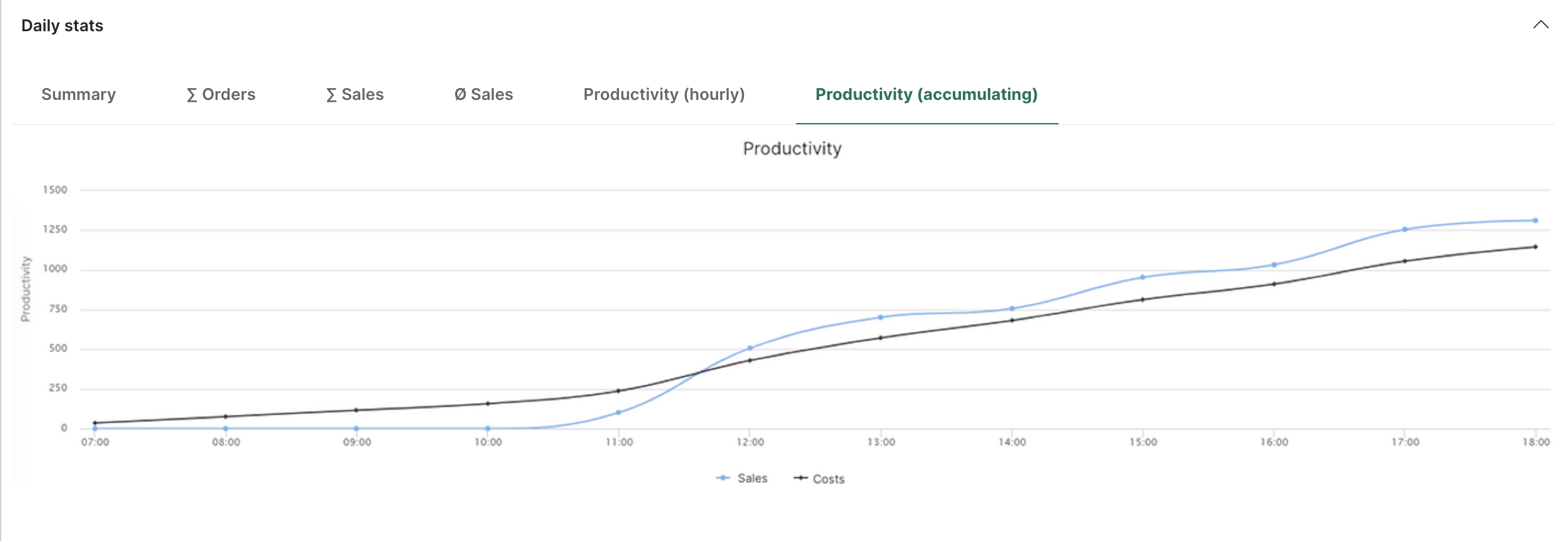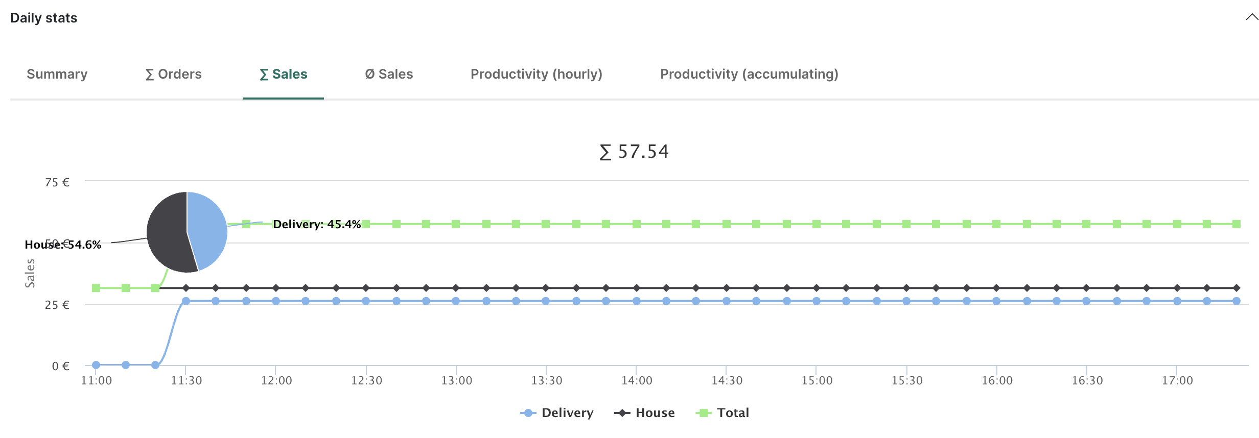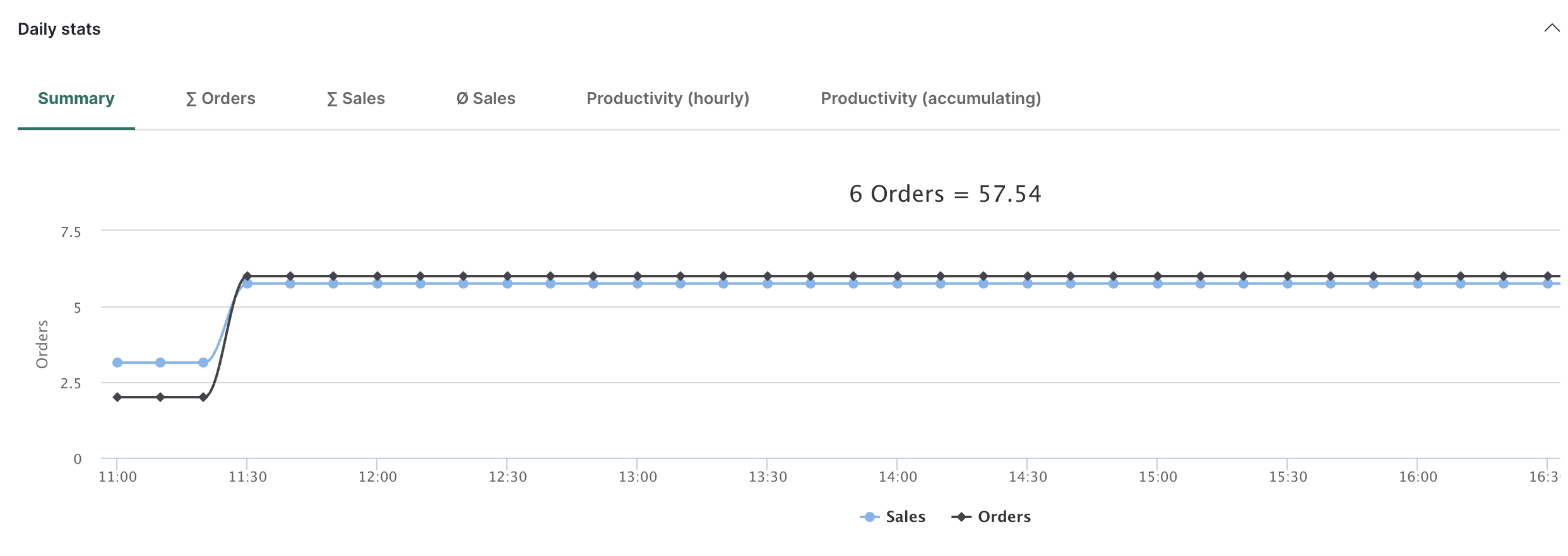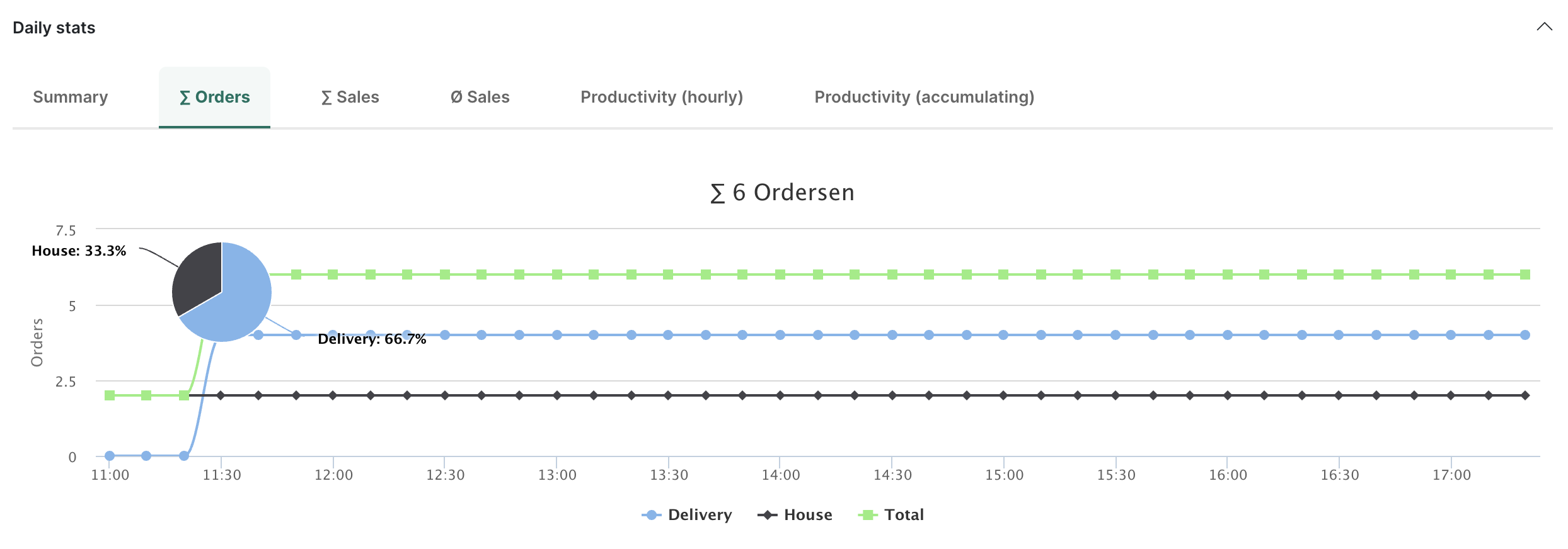 The daily statistics provide a summarized overview of the day, including the order total, turnover and average daily turnover.