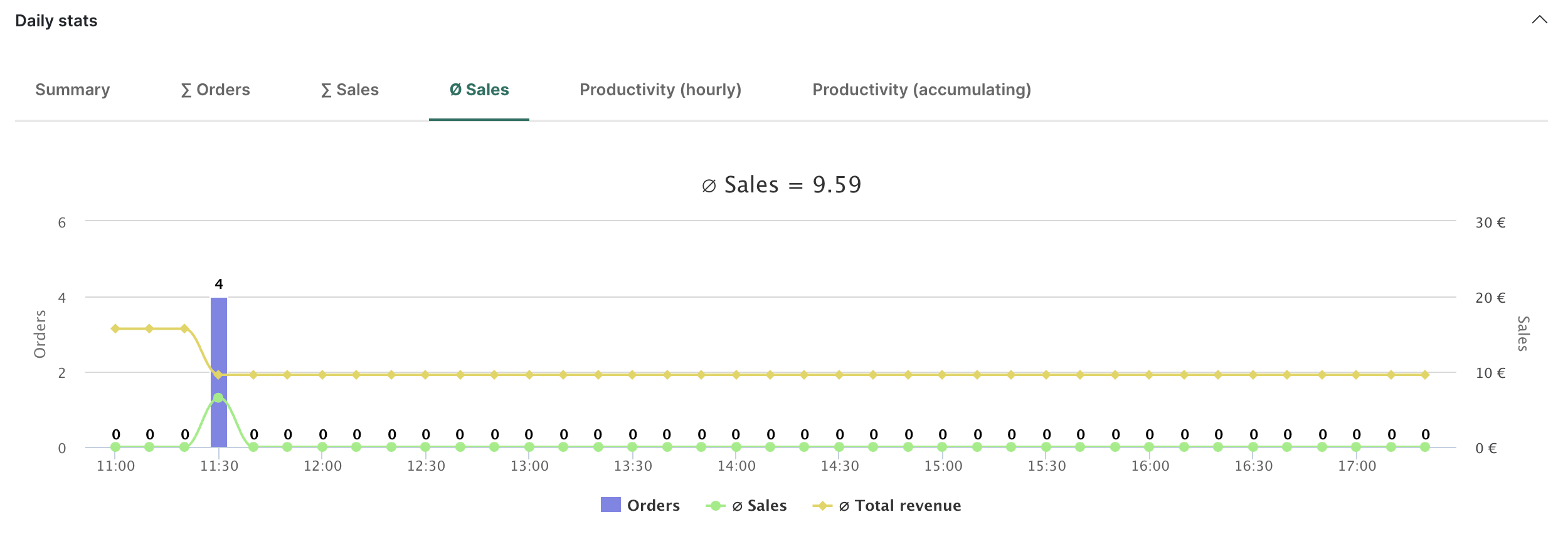 Here you can see a summarized overview of the daily statistics, the total of orders and sales as well as the average daily sales.