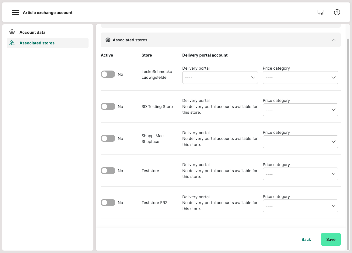In some cases, a delivery portal account is not sufficient to transfer all data from our system to external software (in this case, of course, it is only about items such as sales items, menus, etc.) - in this case, an item exchange account must also be created under Admin: External services > Item exchange > Add article exchange account.