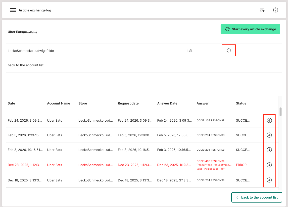 With an item exchange, item data can be retrieved or transmitted between internal and external systems (e.g. Uber Eats, Foodora).