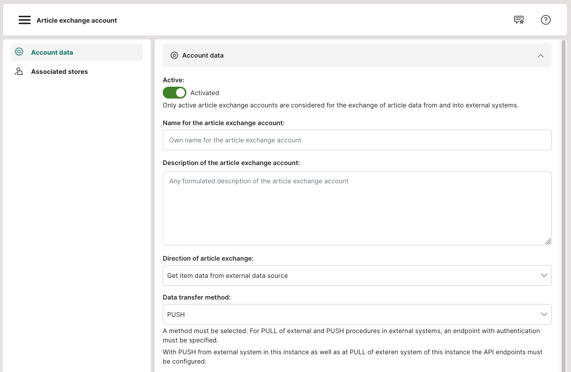 Alternatively, such an item exchange account can also be used to avoid having to manually mirror the items with the external provider, which speeds up the whole process.