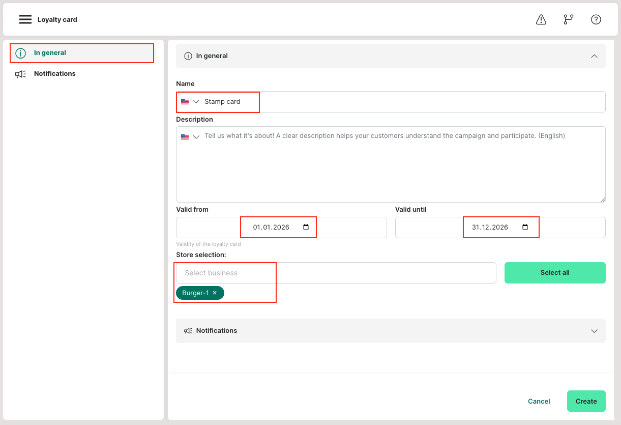 - Enter a "Name", e.g. "Stamp card". This name is visible to the customer.