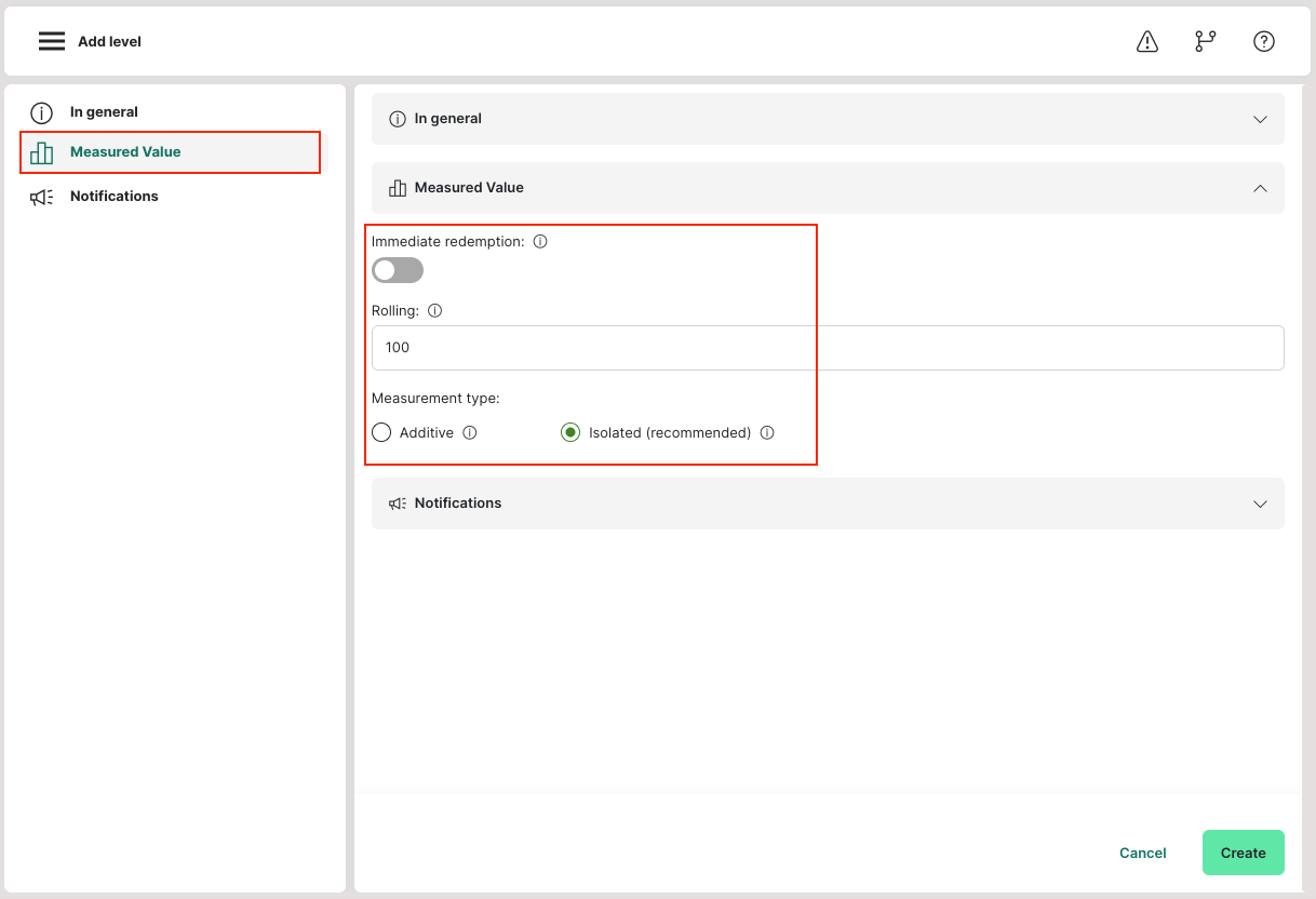Note: In edit mode, the fields in the "Measured value" section are grayed out and cannot be edited. To make changes, deactivate the campaign first. The fields can then be edited.