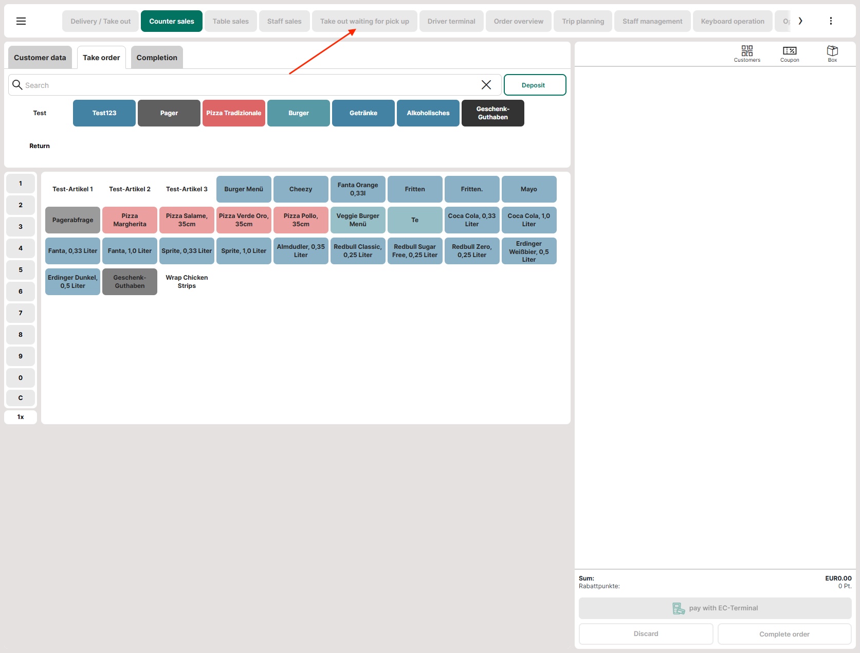 - Open the section "Take out waiting for pick up" in the POS.