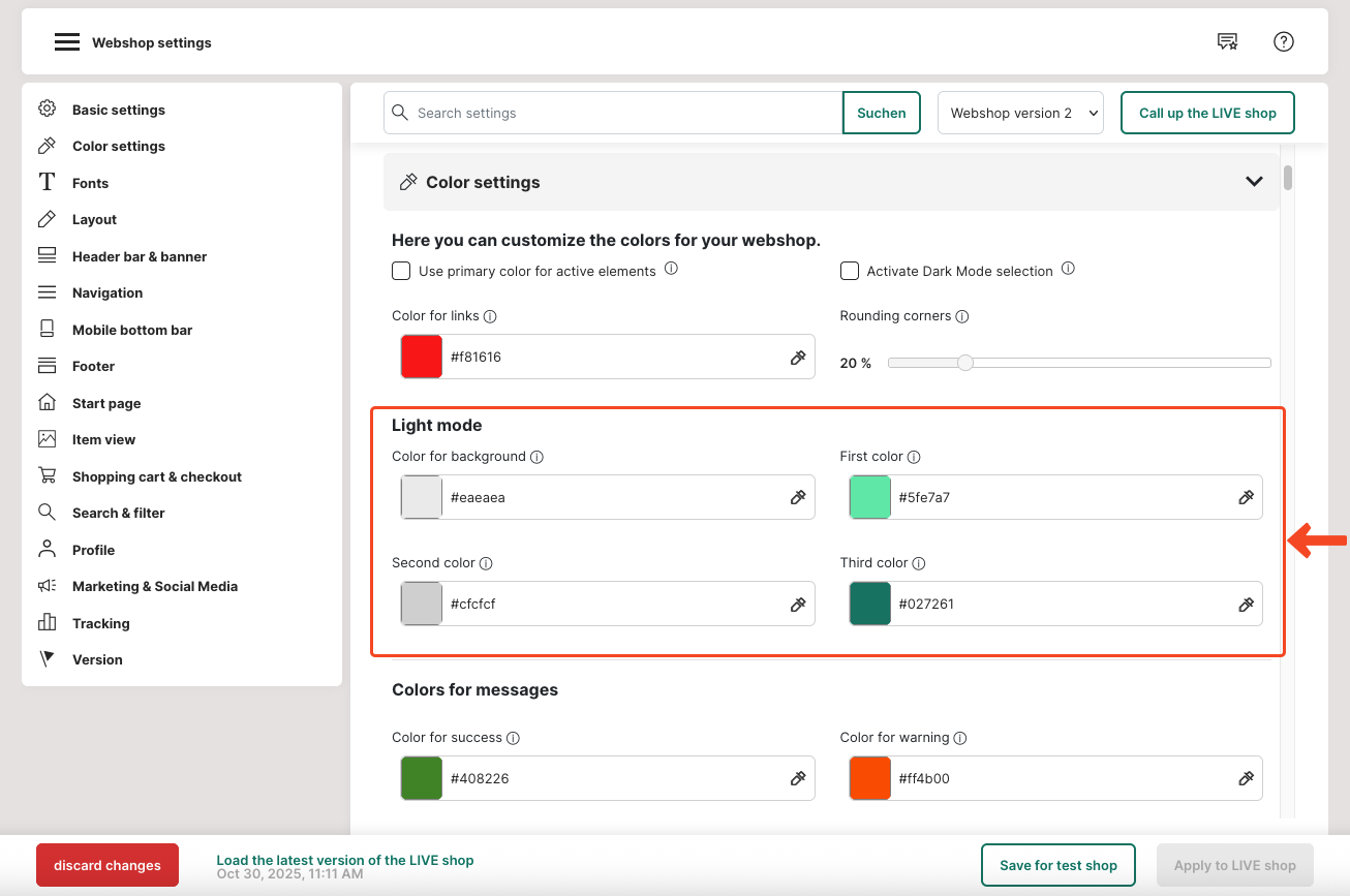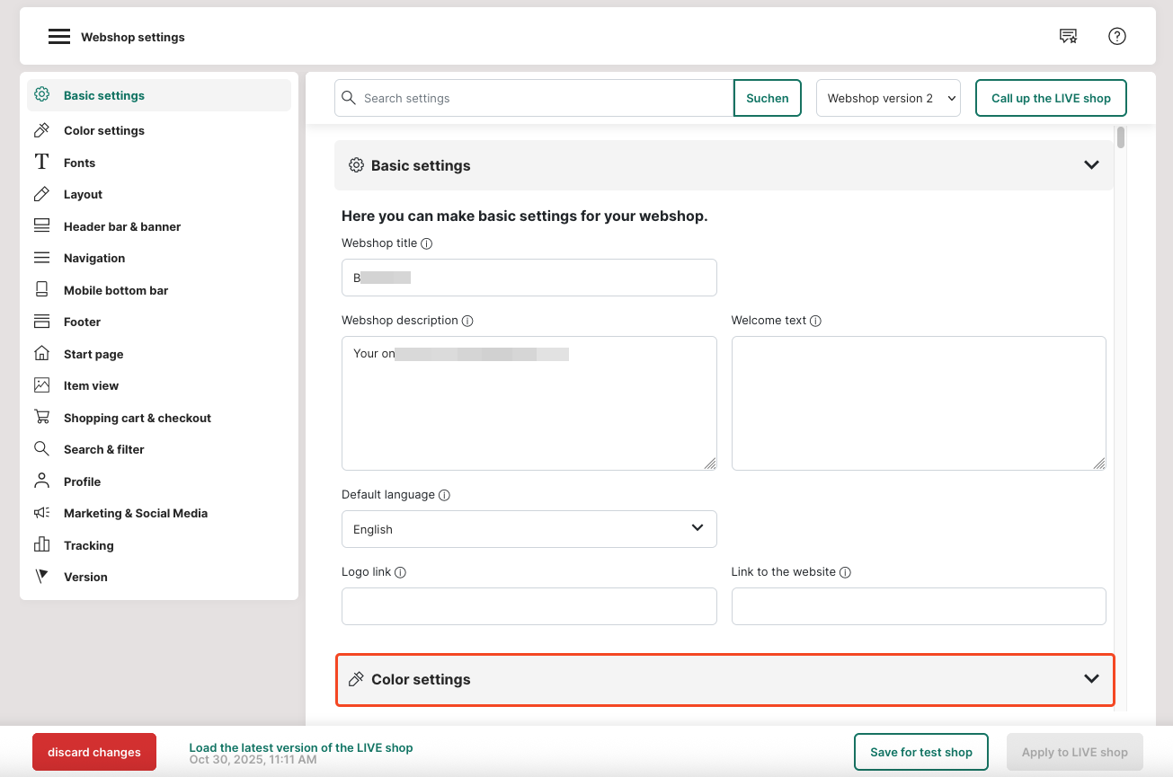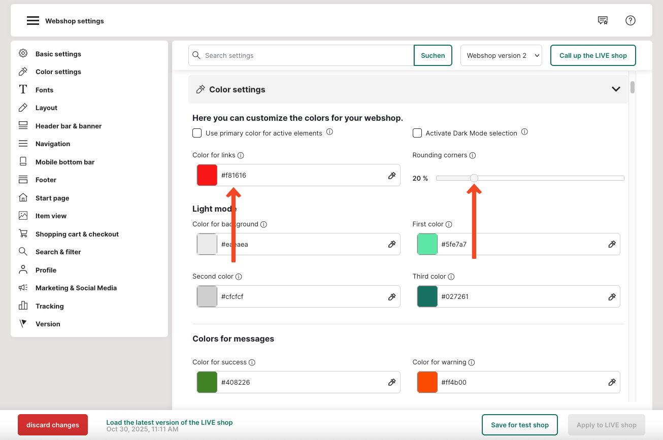 9. Under "Color for links", you can set a color of your choice for links in your online store.