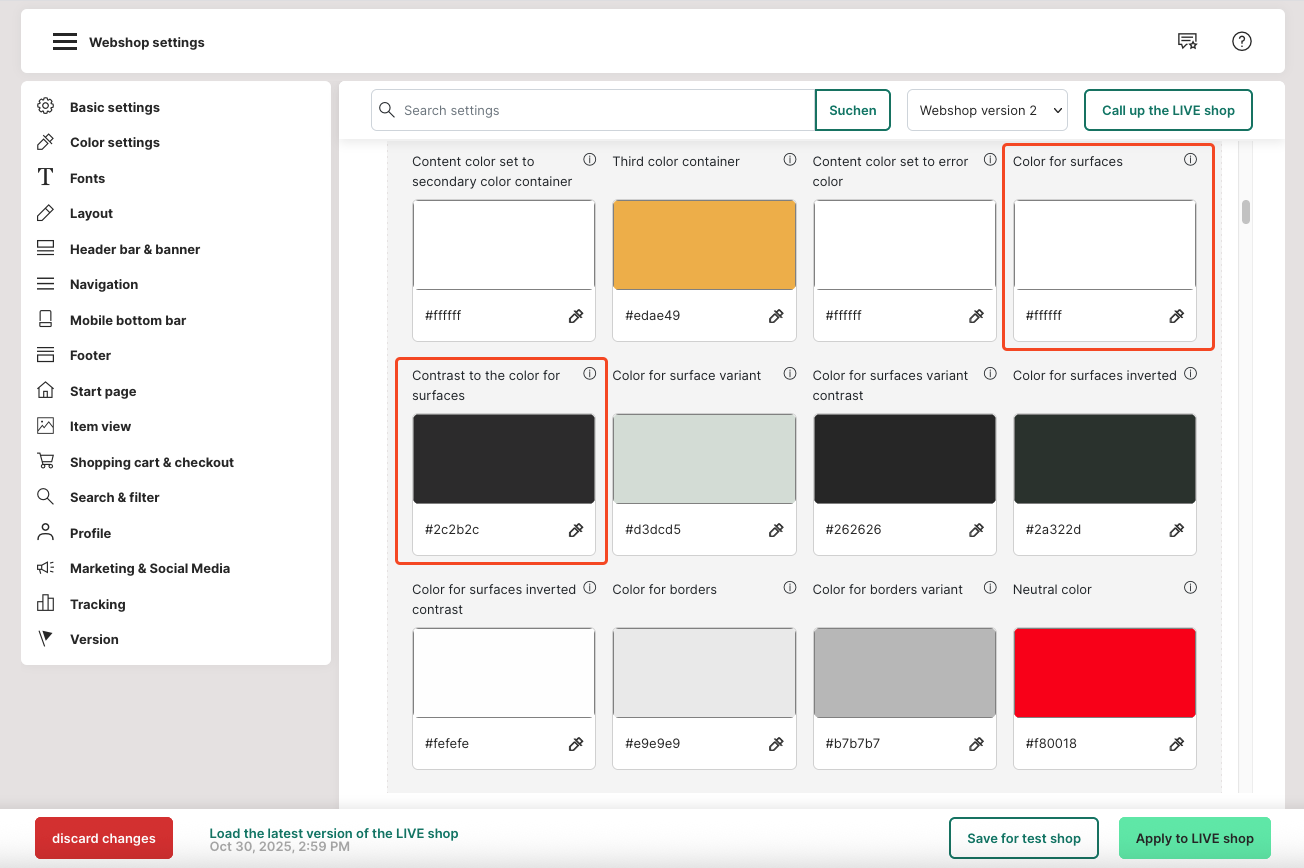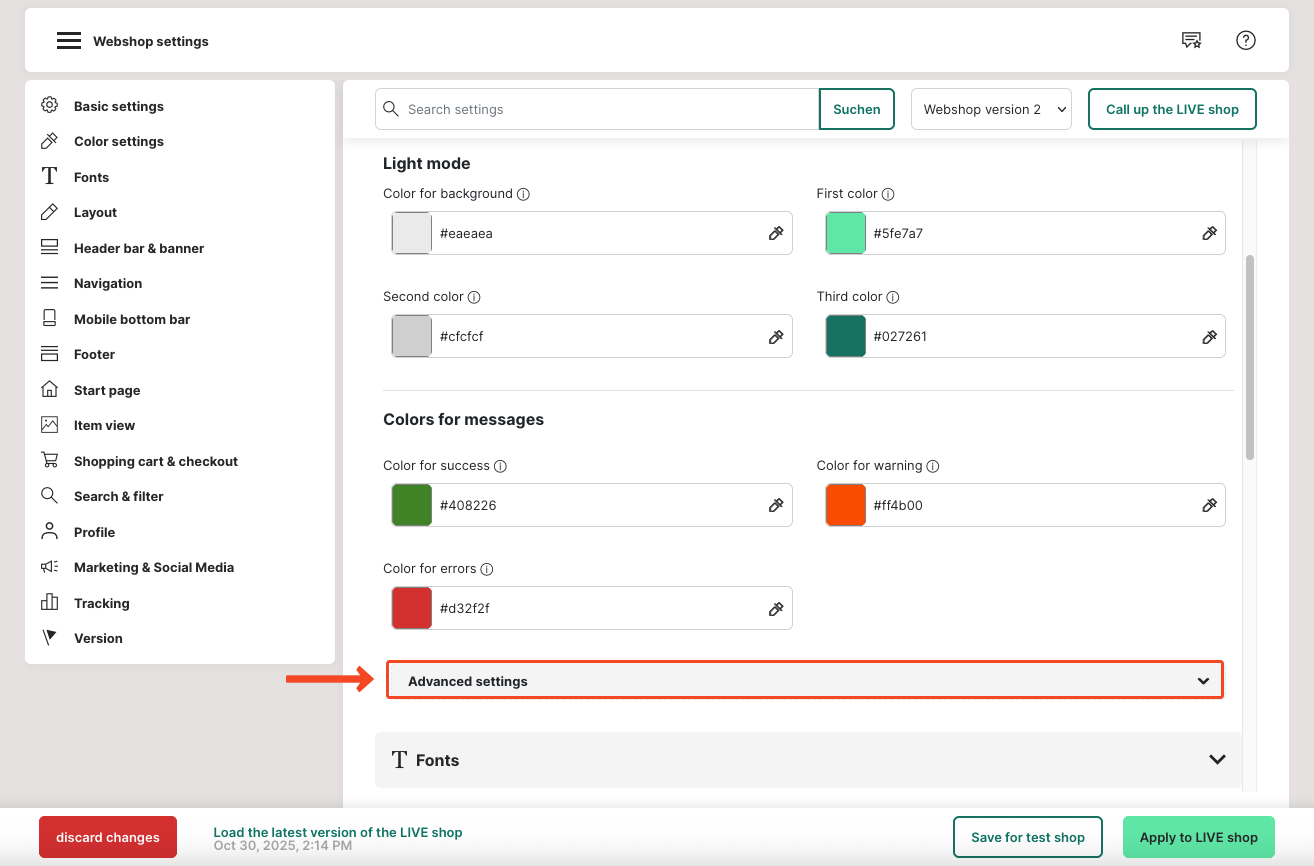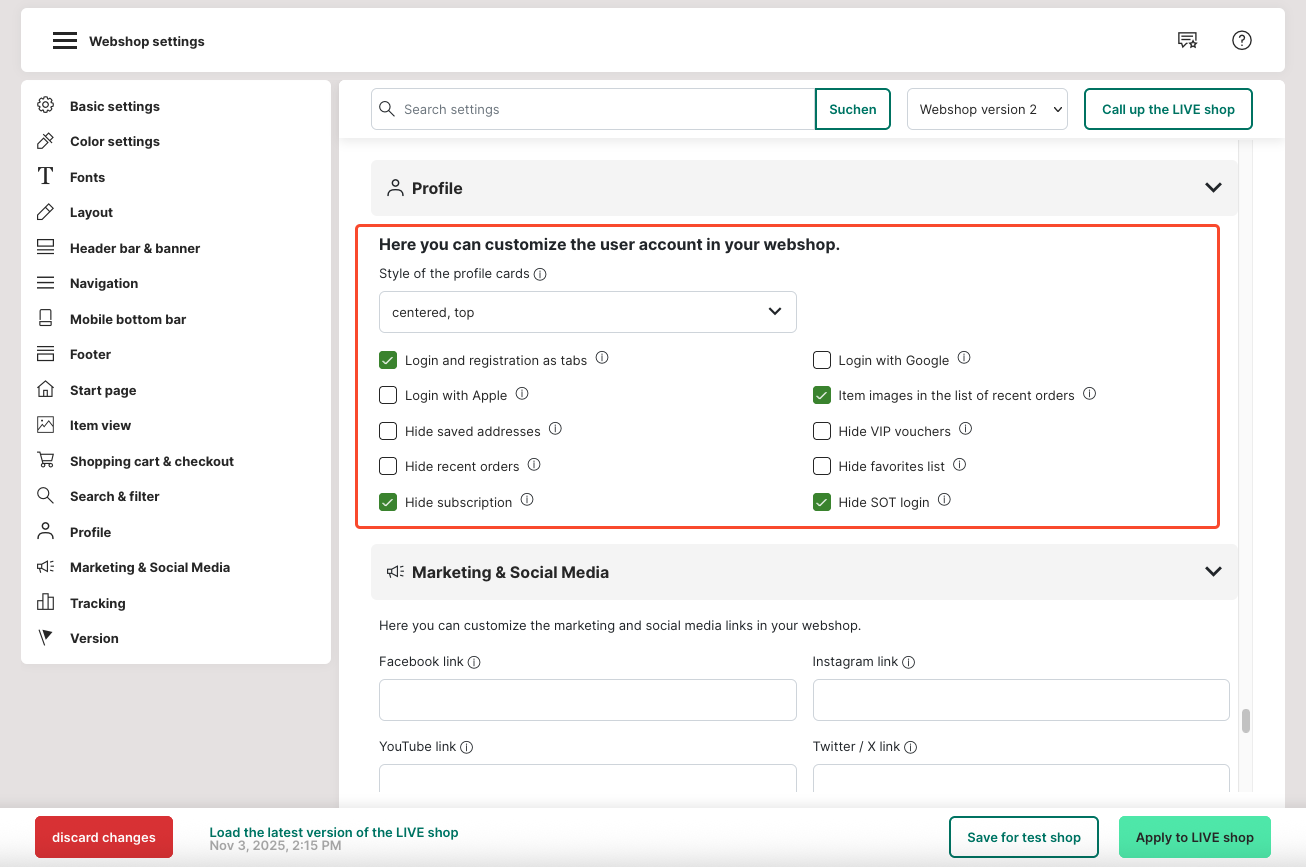 3. Change the settings from "Webshop version 1" to "Webshop version 2".