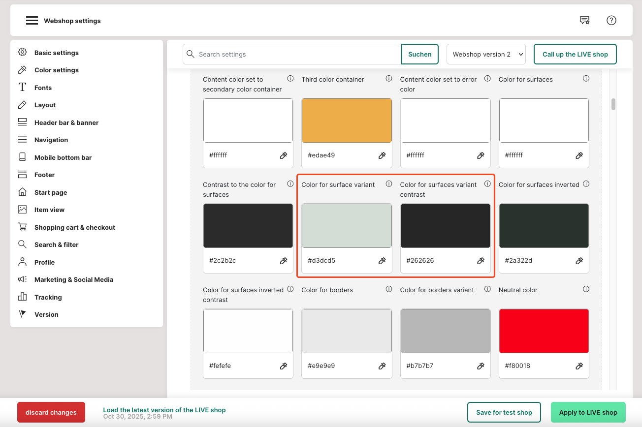 22. The color for "Surface variant" is, for example, for fields where the customer can enter something.