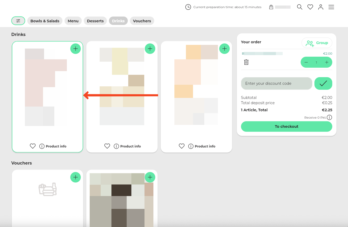 42. In our example, the tile view is activated. With this, you can, for example, promote items or the bonus system.