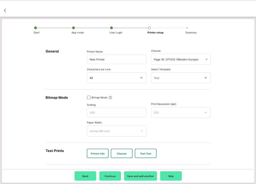 - Click "Continue" to go to the summary, or click "Save and add another" to add an additional printer.