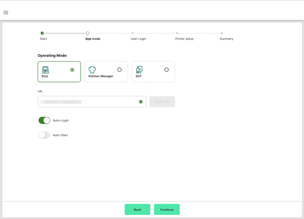 setup assistant of the POS app guides you step by step through the